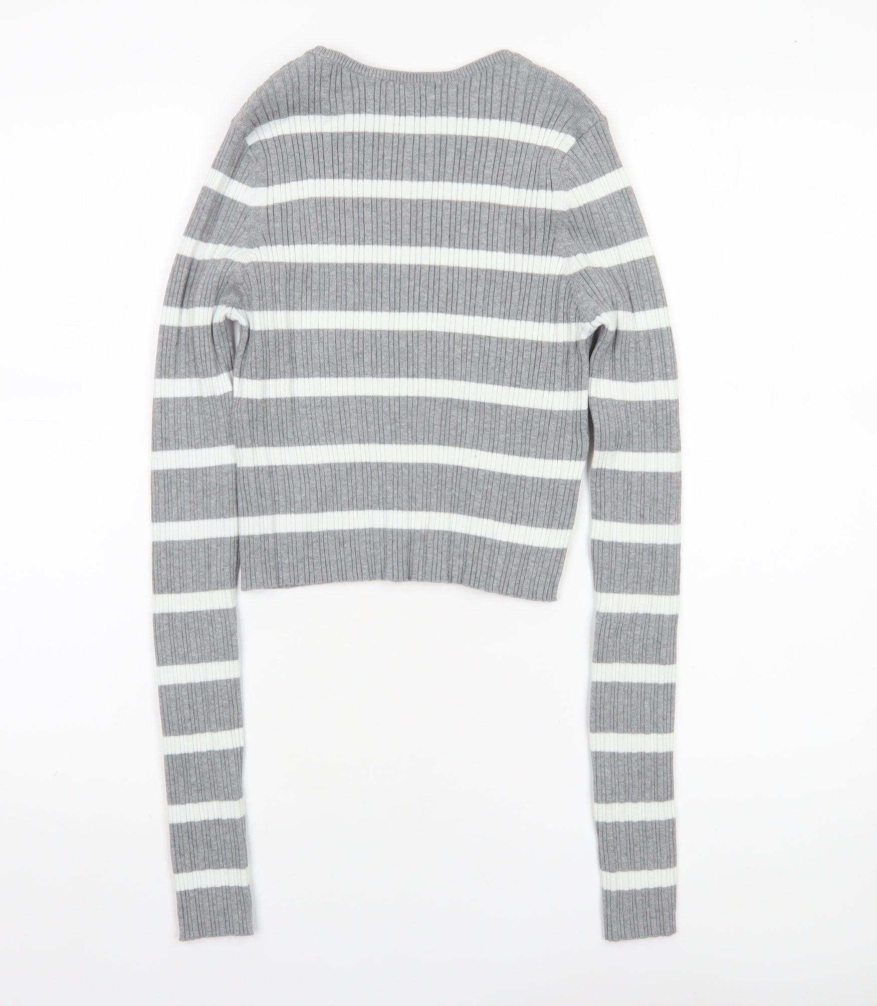 ASOS DESIGN Women’s Grey Striped Crew Neck Knit Jumper Size M 12-14