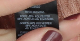 - Material Breakdown: 48% Polyester 48% Acrylic 4% Elastane