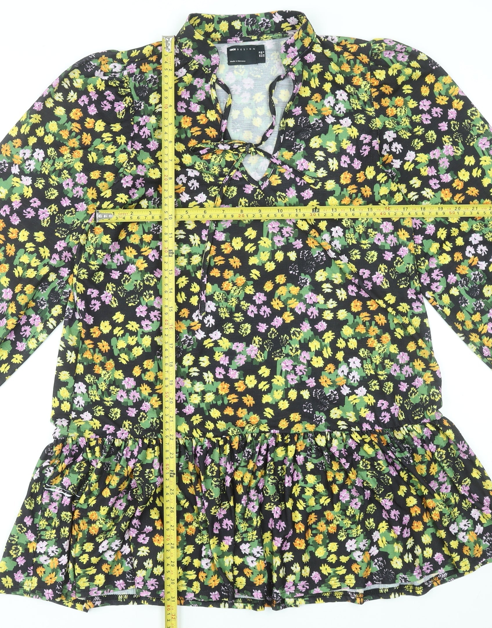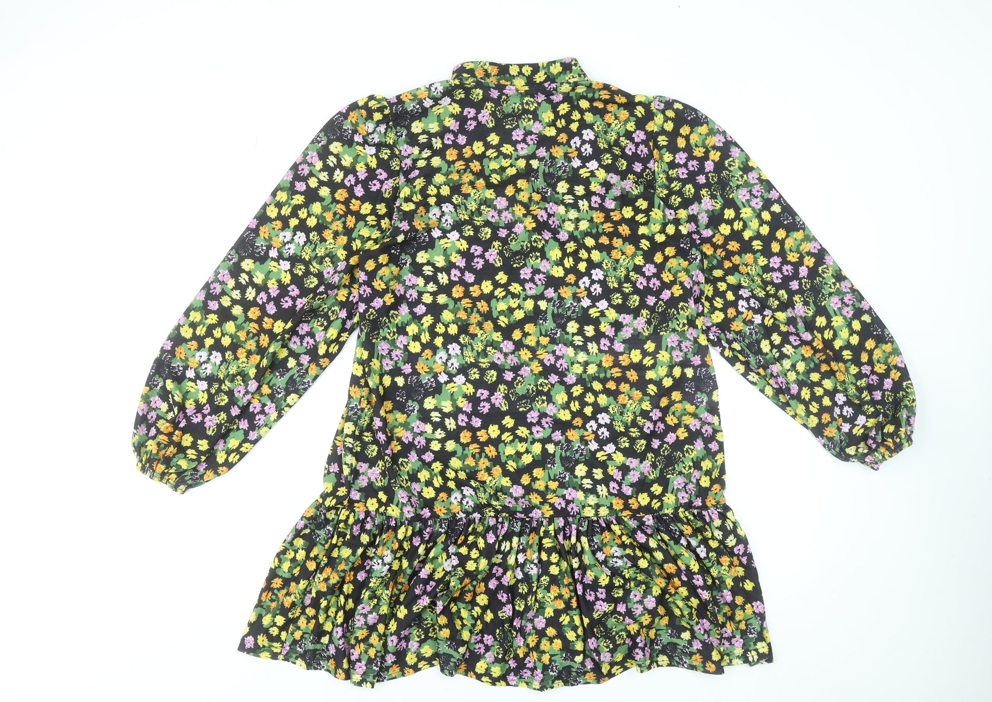 ASOS Design Women's Black Floral Long Sleeve Mini Dress UK 10