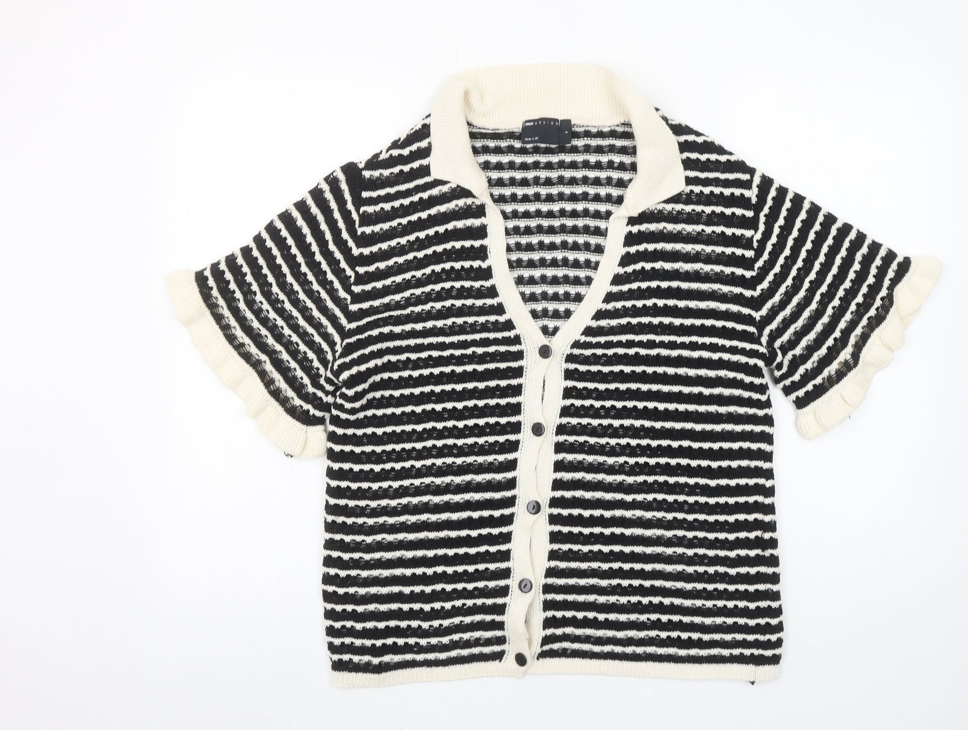 ASOS DESIGN Women's Black Striped Short Sleeve Knit Cardigan Size S