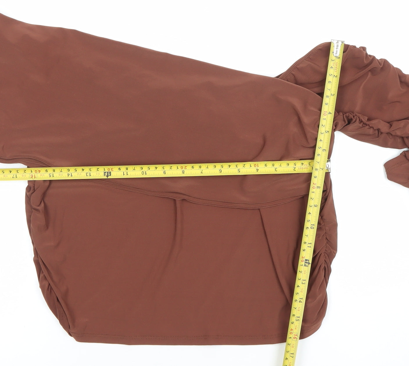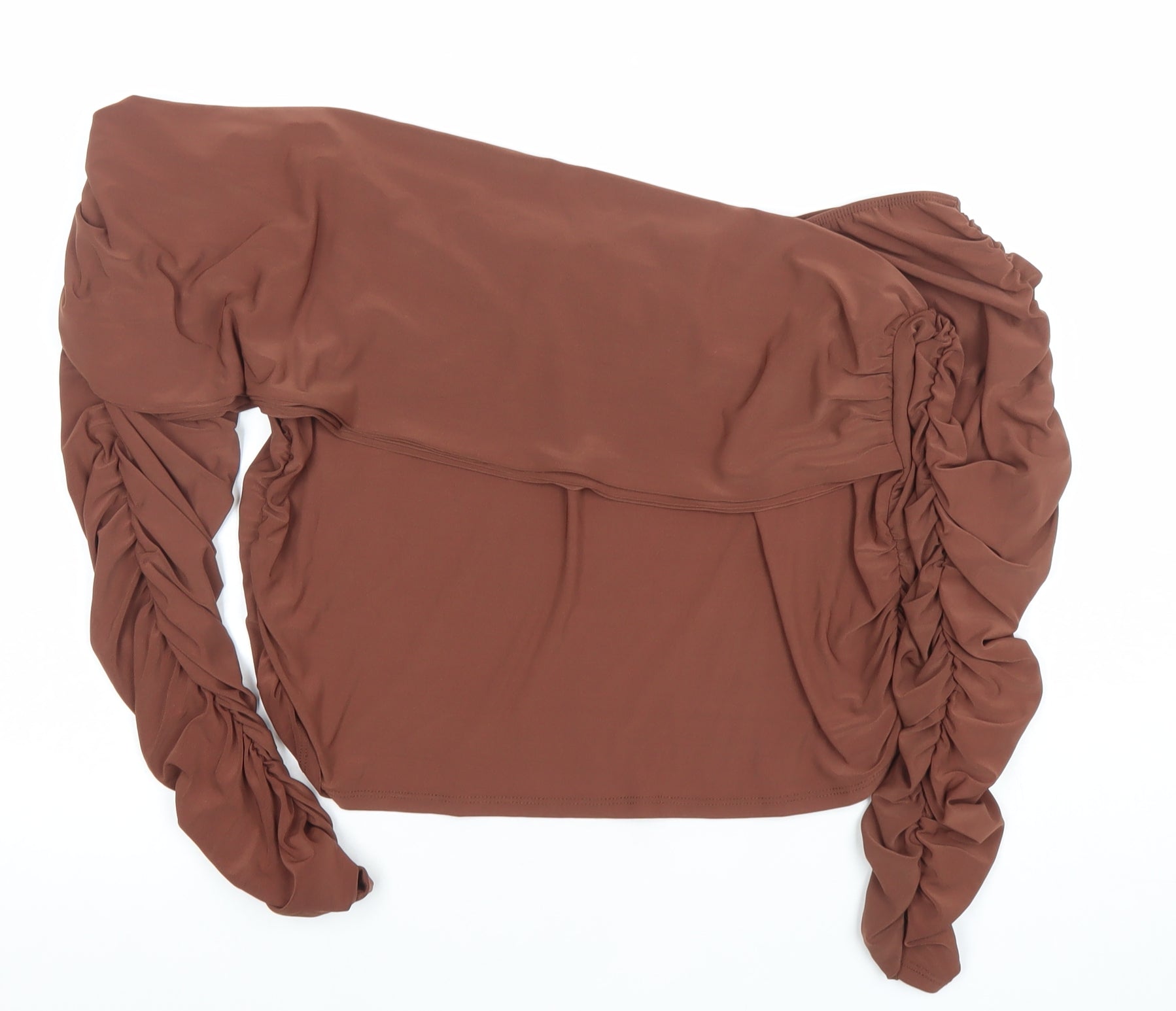 ASOS DESIGN Women's Brown Off Shoulder Ruched Long Sleeve Cropped Blouse UK 20