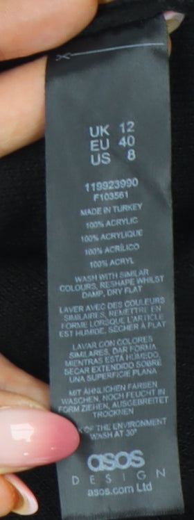 ASOS Design Womens Petite Black Size 12 V-Neck Ruched Jumper