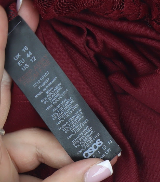 ASOS DESIGN Women's Red Lace Midi Bodycon Dress - Size 16