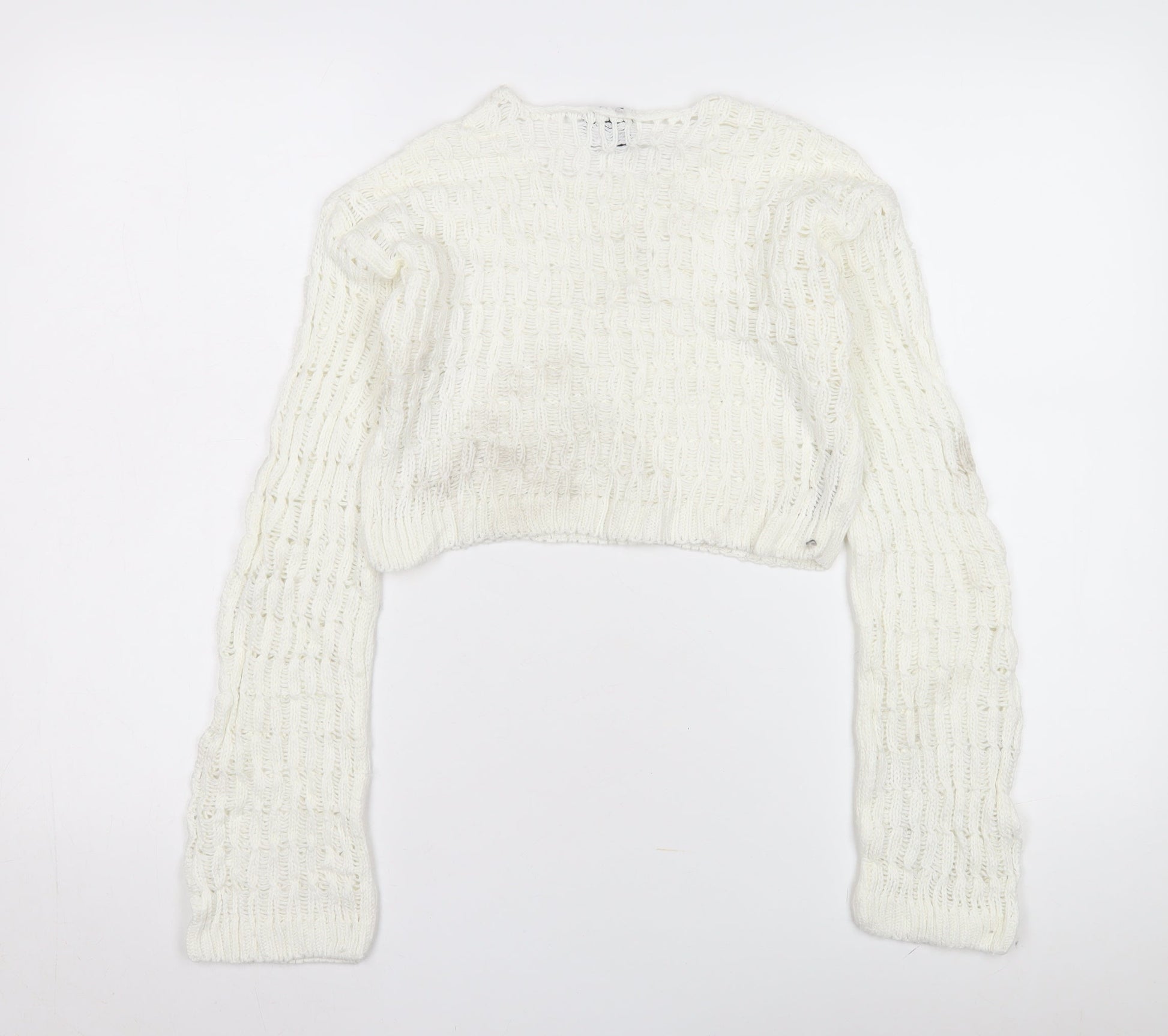ASOS Design Women's White Open-Knit Pullover Jumper S