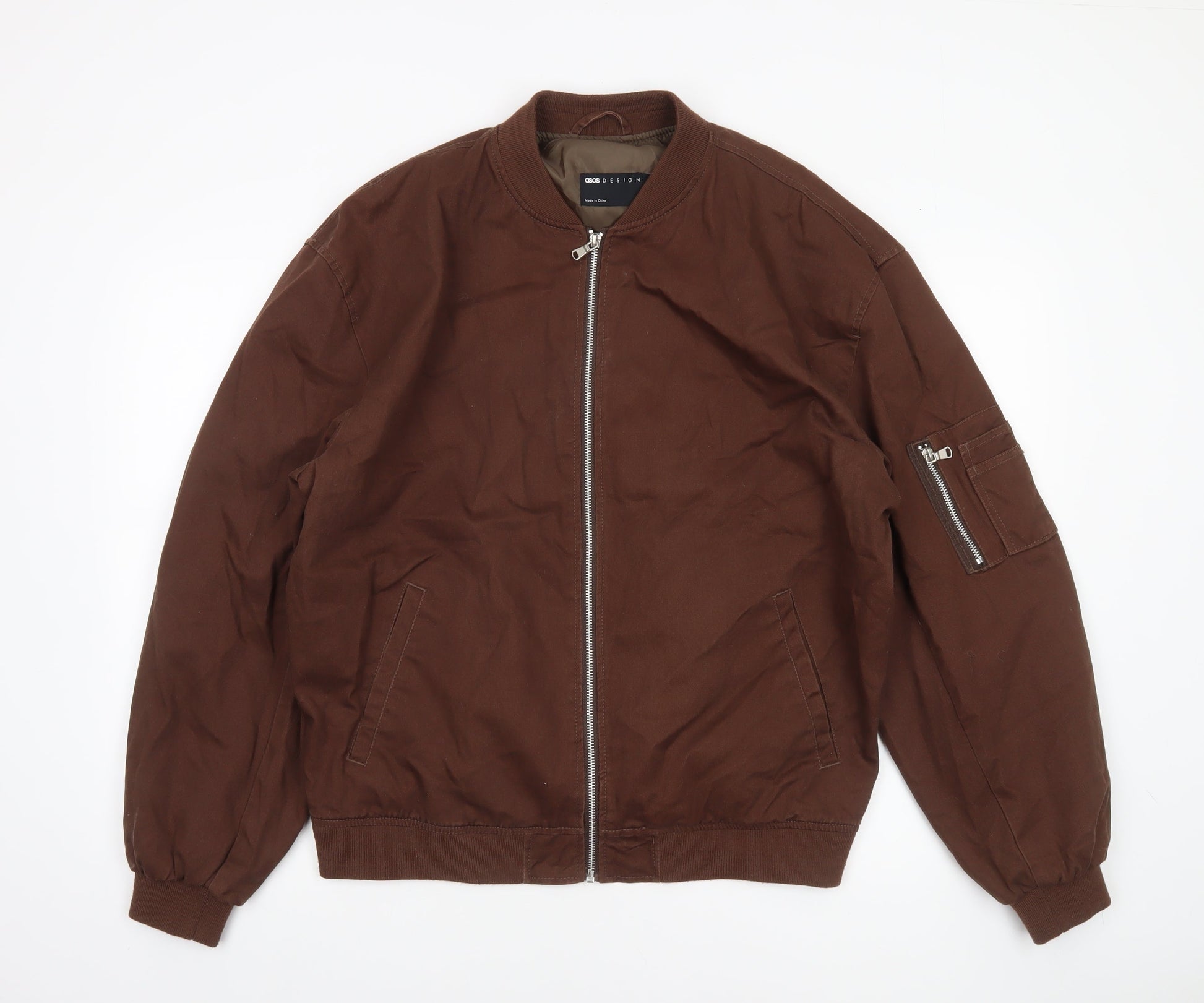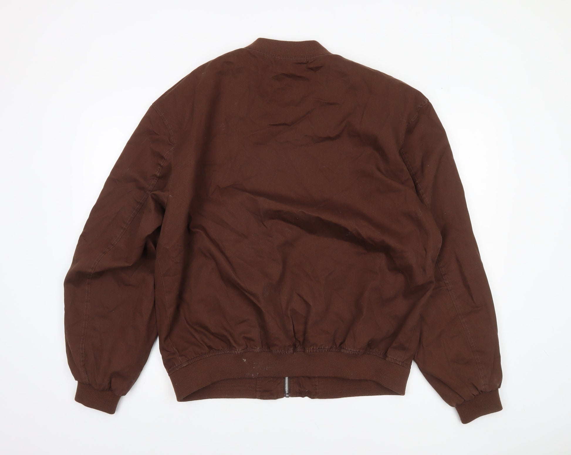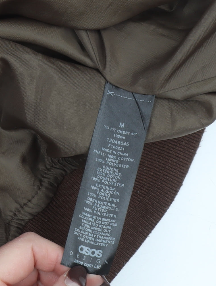 ASOS Men’s Brown Cotton Bomber Jacket Size M Regular Fit Zip Pockets
