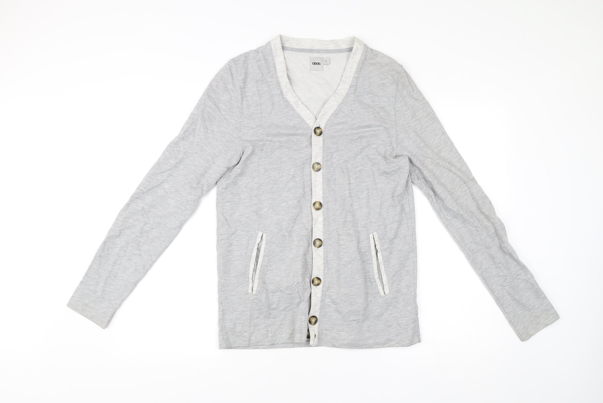 ASOS Men’s Grey Cotton Cardigan S V-Neck Button Casual Workwear
