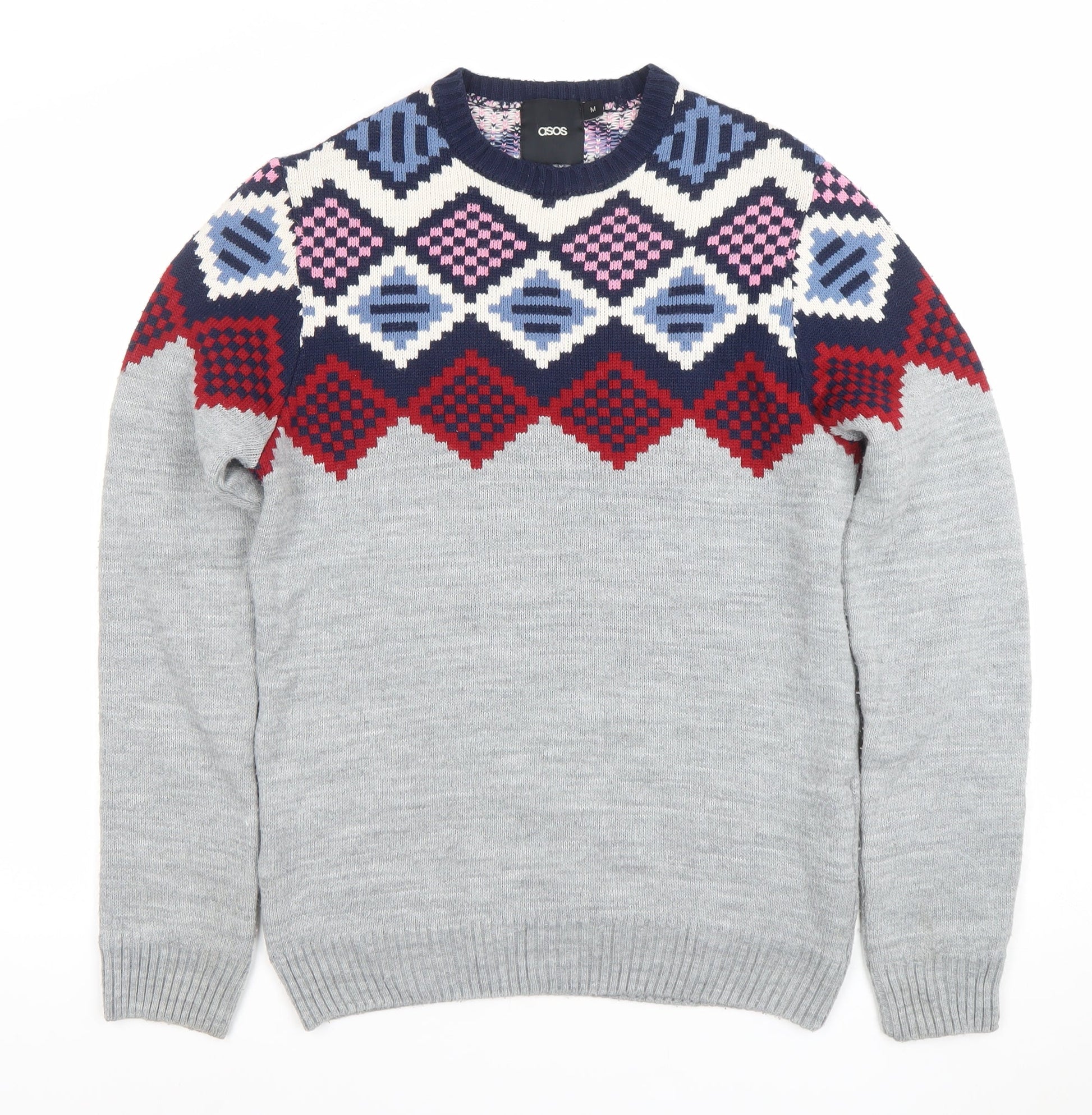 ASOS Men’s Grey Geometric Knit Jumper Size M Long Sleeve Pullover