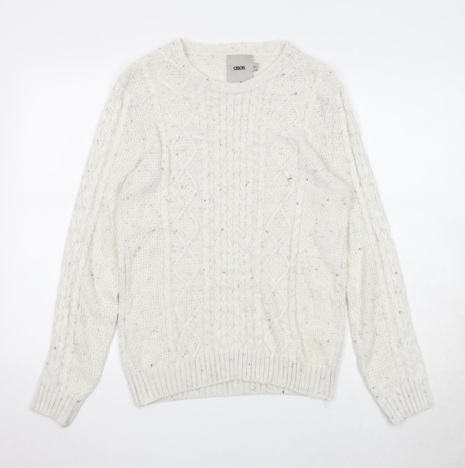 ASOS Mens Beige Round Neck Acrylic Pullover Jumper Size S Long Sleeve