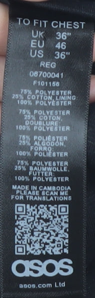 ASOS Men's Black Blazer, UK 36, Regular Fit, Formal