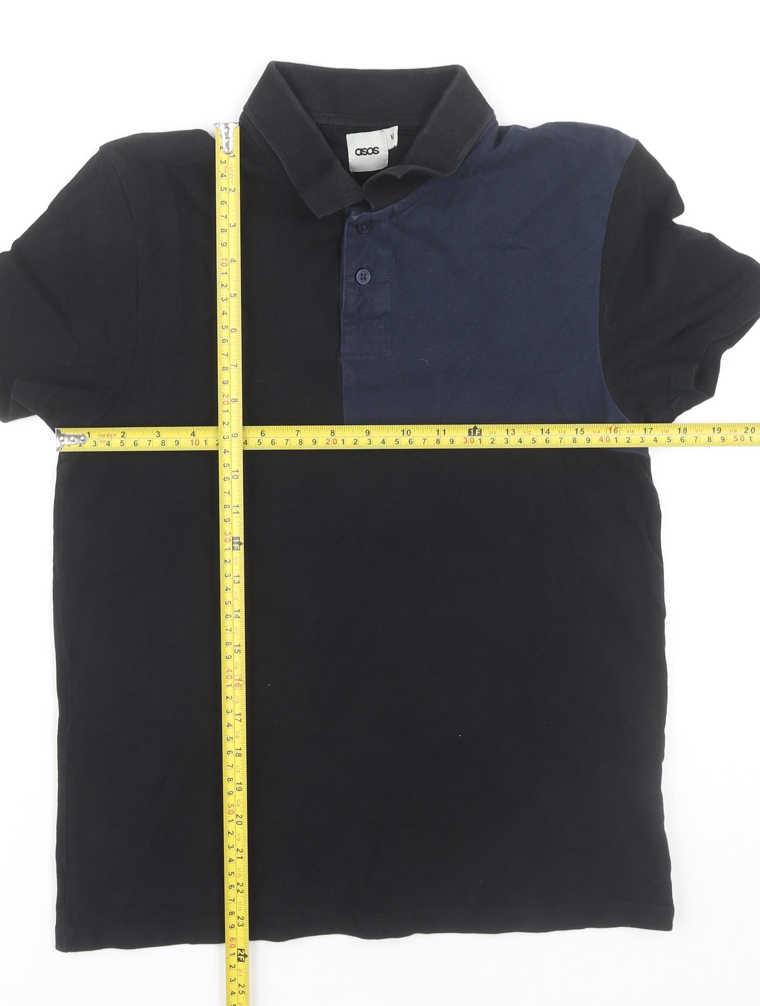 ASOS Men's Black Colourblock Polo Shirt Size M Cotton Short Sleeve