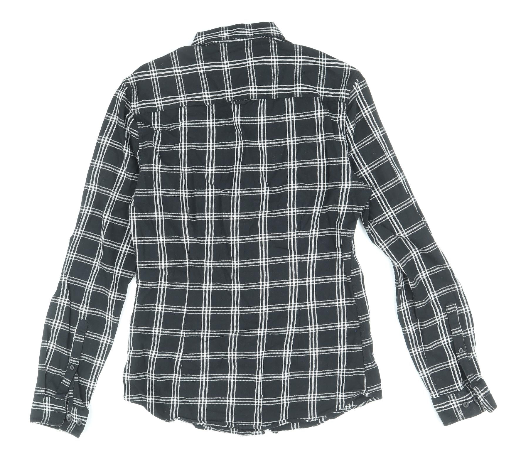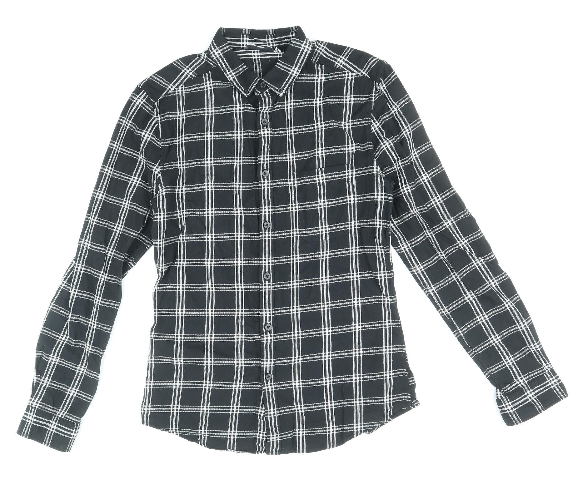 ASOS Mens Black Plaid Cotton Button-Up Size M Collared Button