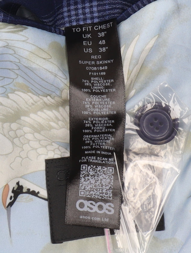 ASOS Men's Blue Check Blazer, Size 38R, Formal Super Skinny Fit