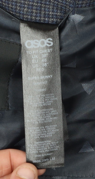 ASOS Men's Blue Check Slim Fit Blazer, Size 38