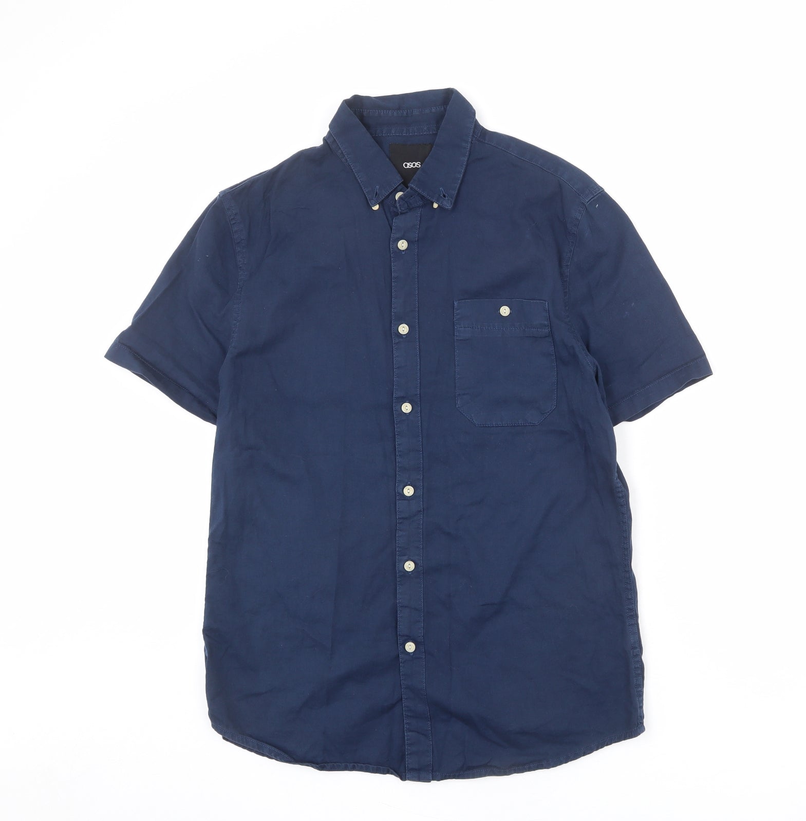 ASOS Mens Blue Cotton Button-Up Size M Collared Button