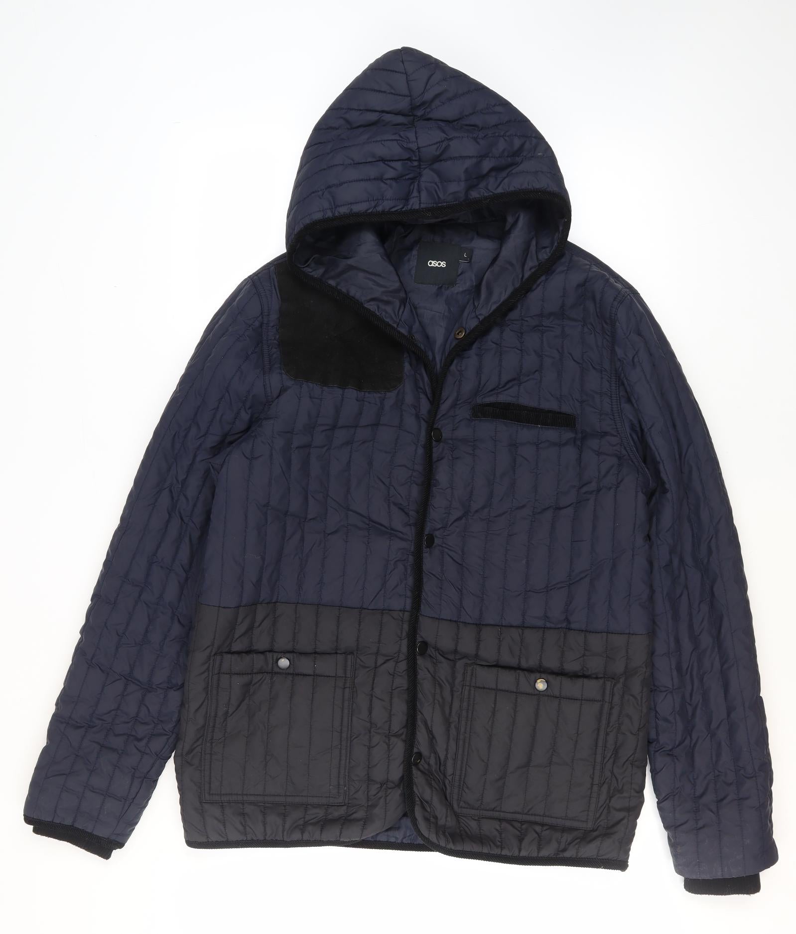 ASOS Men's Blue Quilted Hooded Jacket, Size L