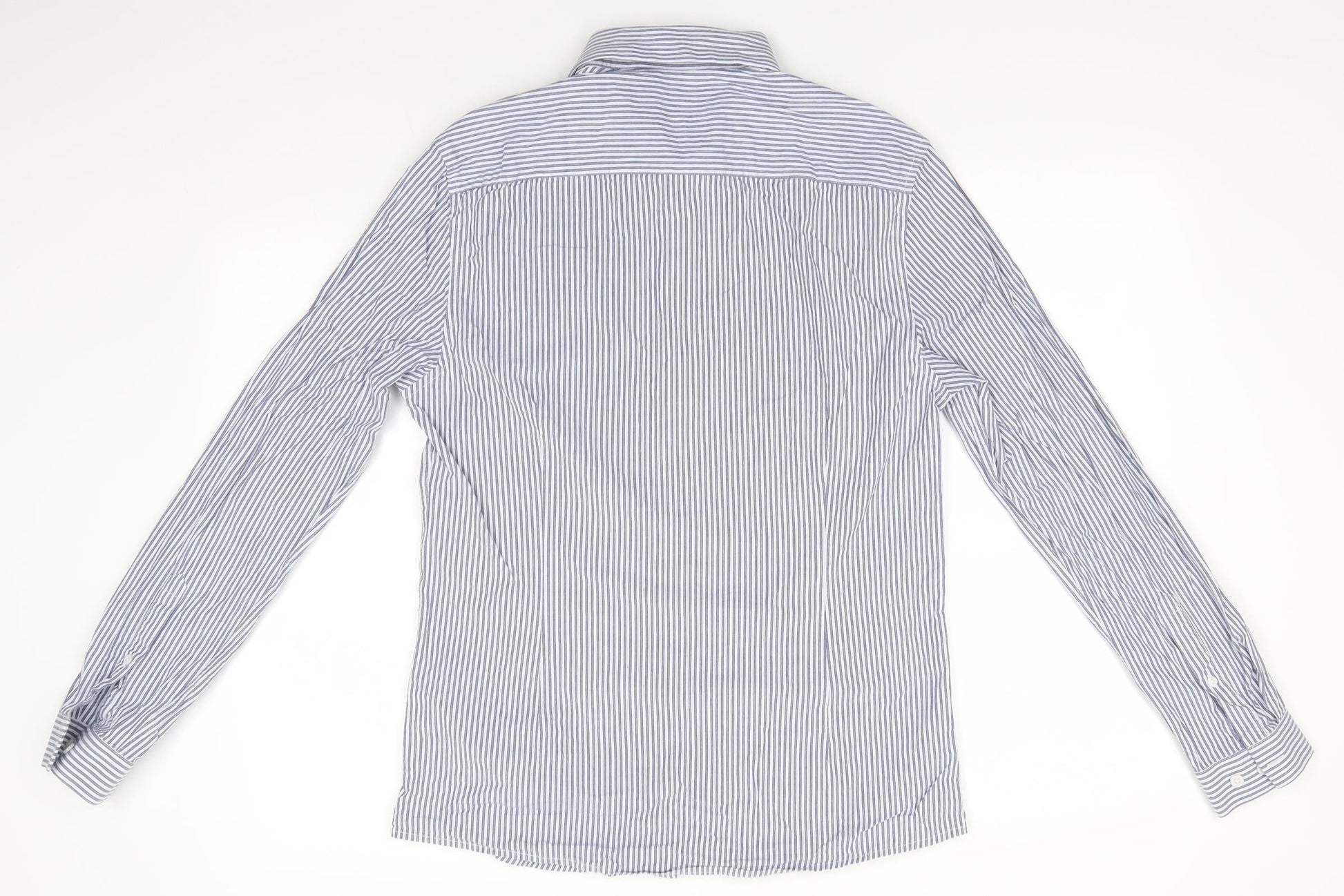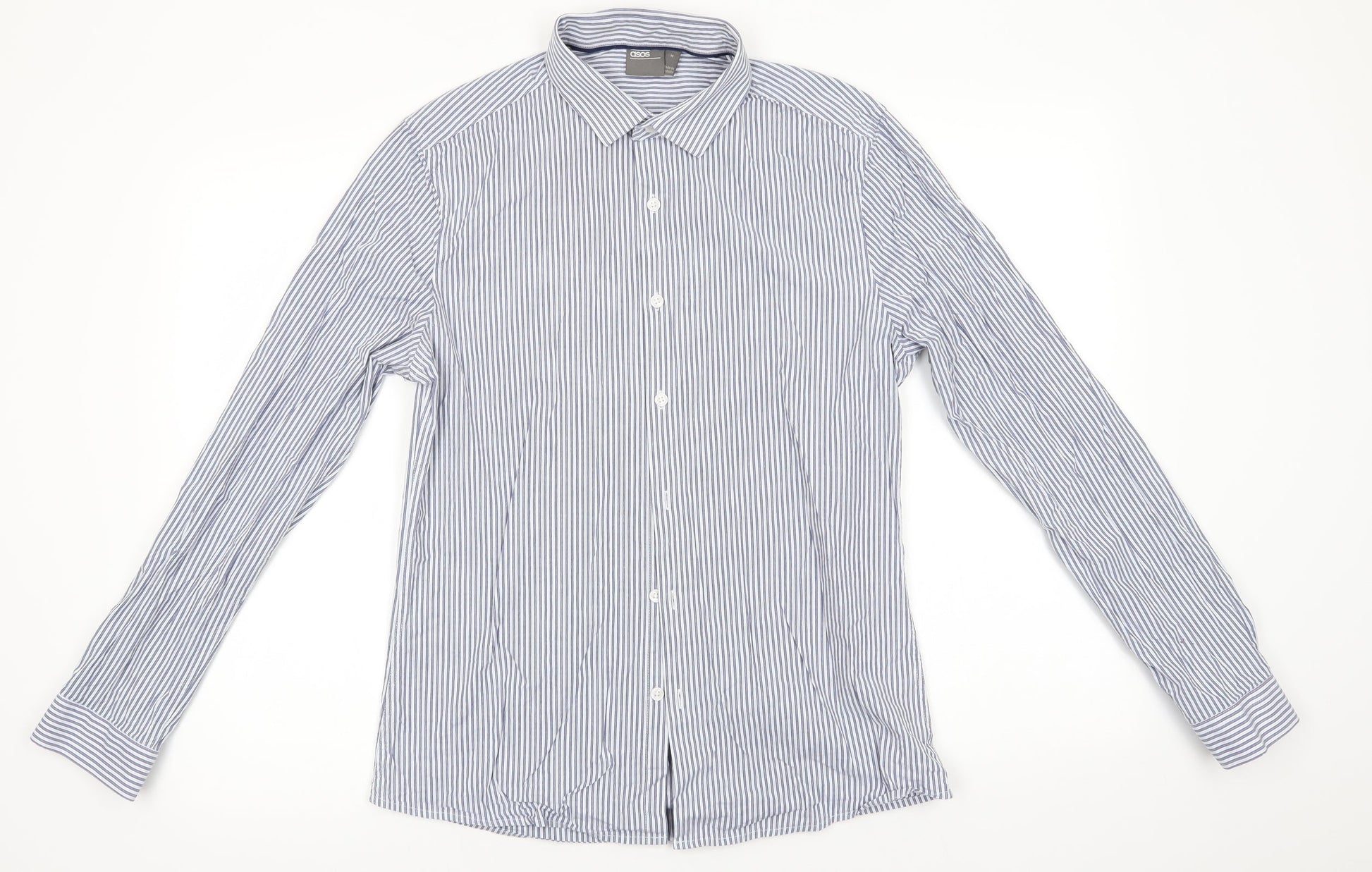 ASOS Mens Blue Striped Cotton Button-Up Size M Collared Button - Blue White Stripe
