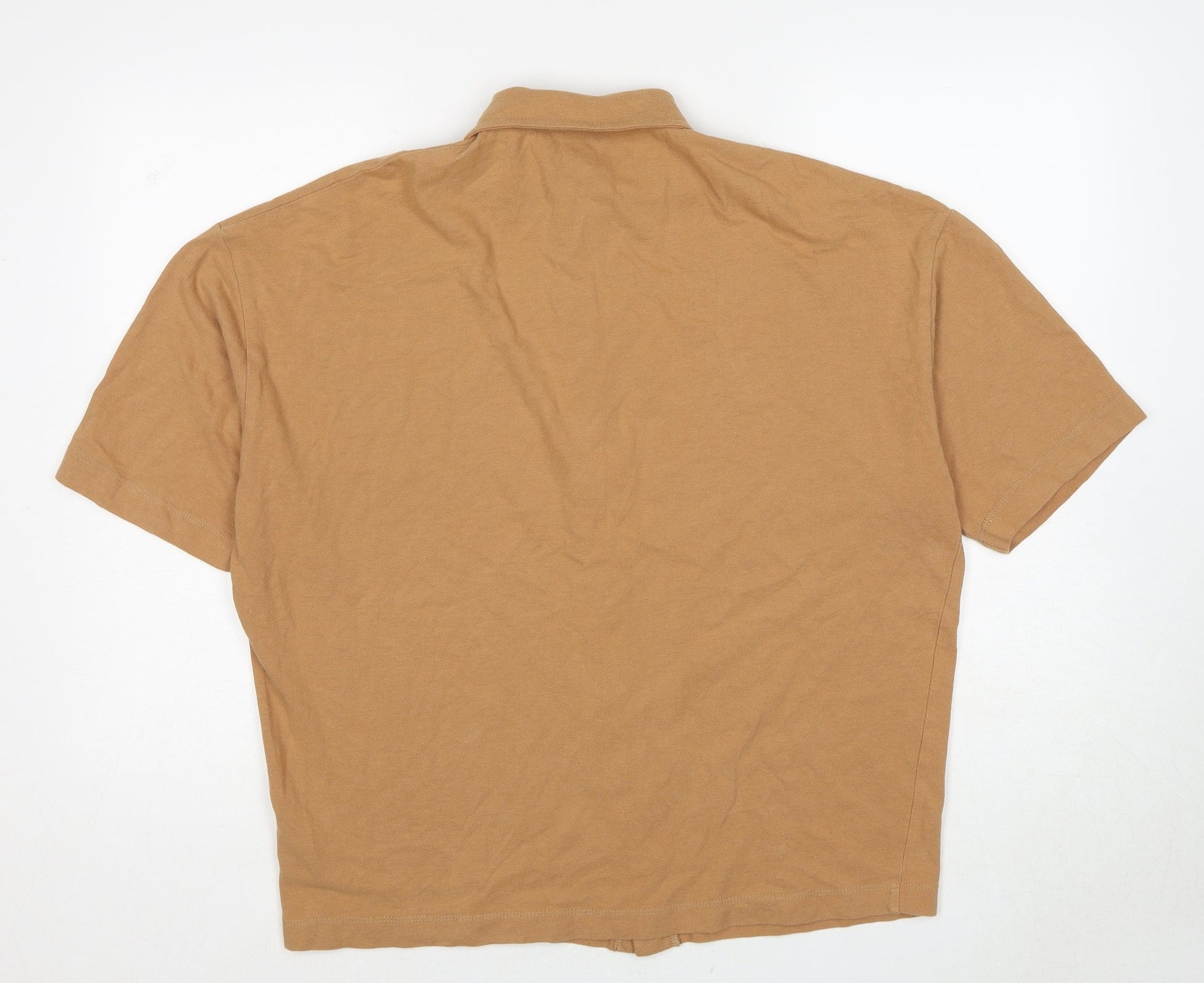 ASOS Mens Brown Cotton Button-Up Size S Collared Button