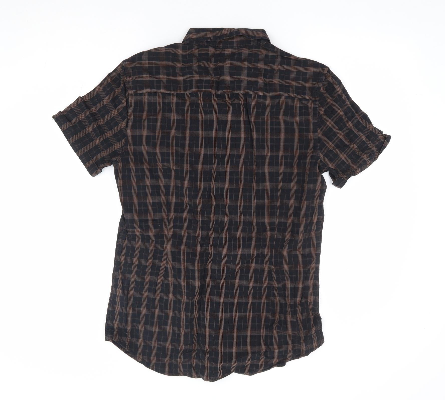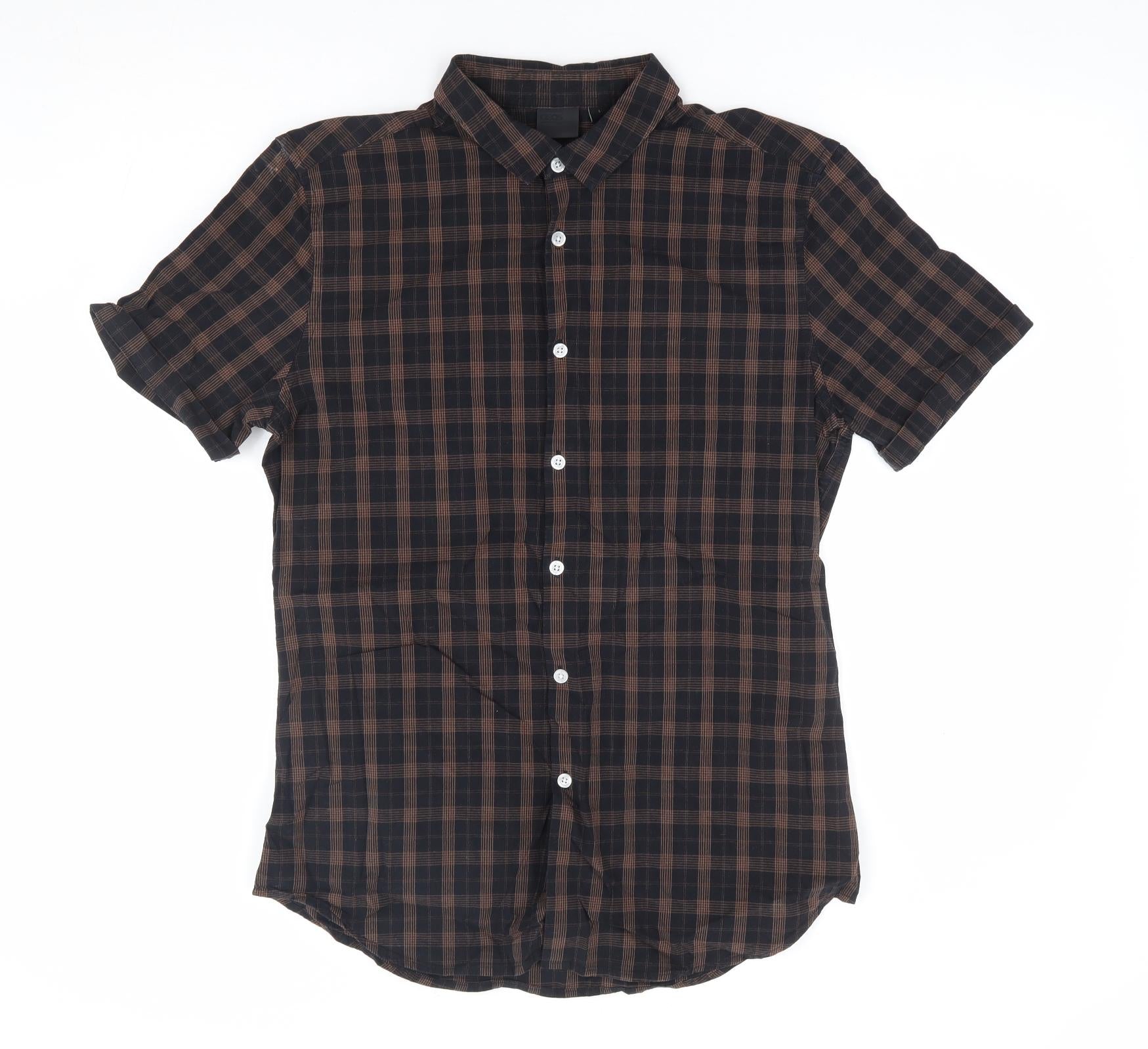 ASOS Mens Brown Plaid Cotton Button-Up Size L Collared Button