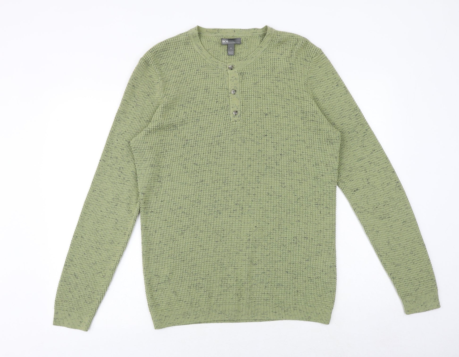 ASOS Mens Green Round Neck Acrylic Pullover Jumper Size M Long Sleeve