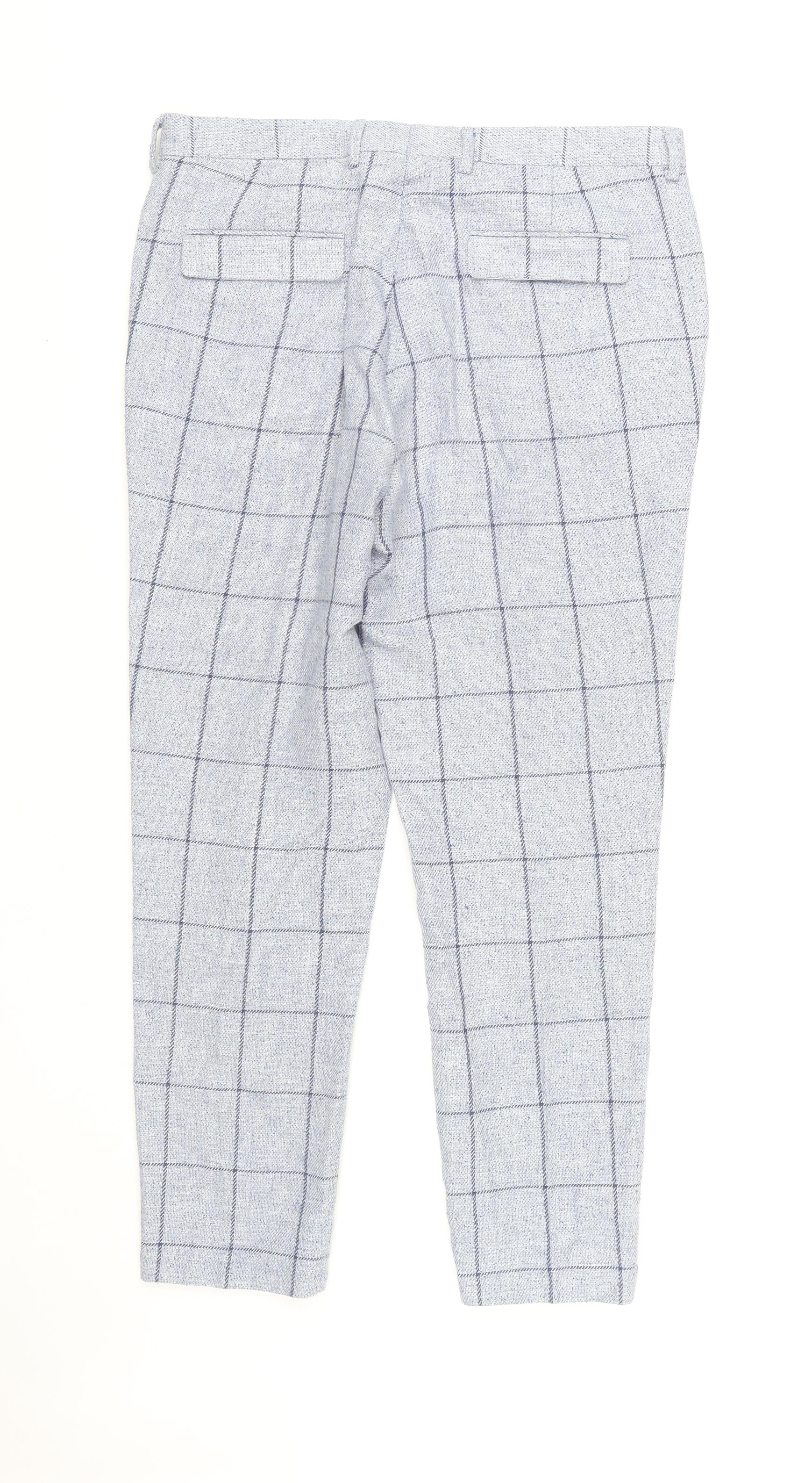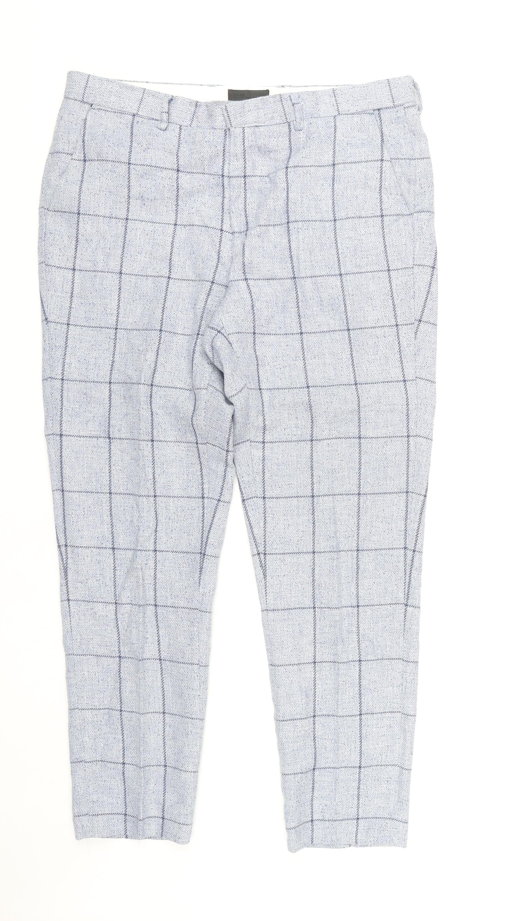 ASOS Men's Grey Check Trousers, Size L, Polyester Blend