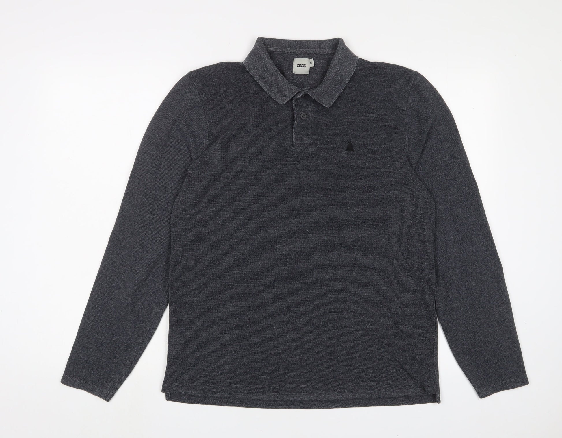 ASOS Mens Grey Cotton Polo Size M Collared Button - Logo, Embroidered