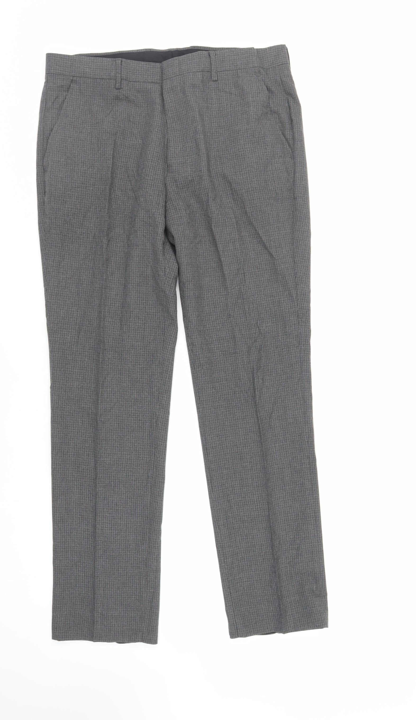 ASOS Mens Grey Plaid Polyester Dress Pants Trousers Size 32 in L32 in Regular Zip