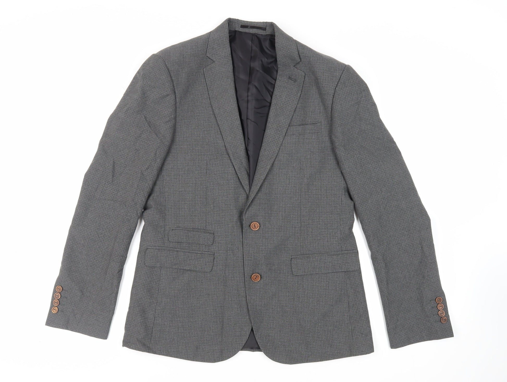 ASOS Mens Grey Plaid Polyester Jacket Suit Jacket Size 40 Regular