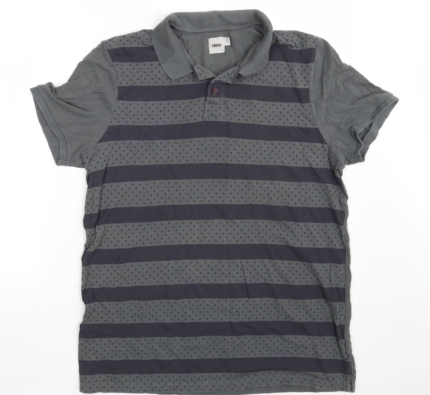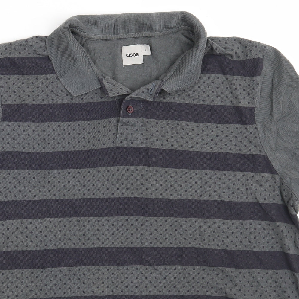 ASOS Mens Grey Striped 100% Cotton Polo Size L Collared Button