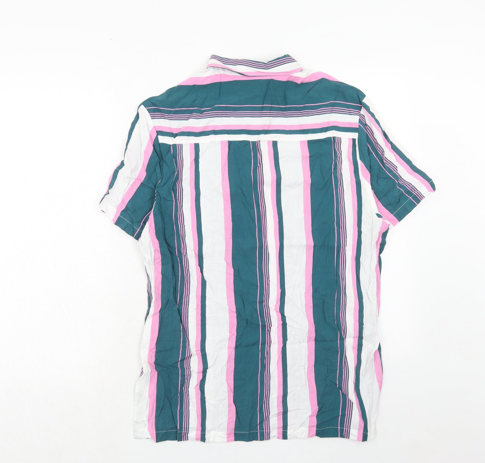 ASOS Mens Multicoloured Striped Viscose Button-Up Size S Collared Button