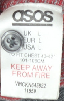 ASOS Men's Red L Henley Jumper, Striped Cotton