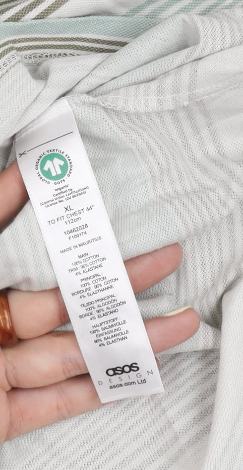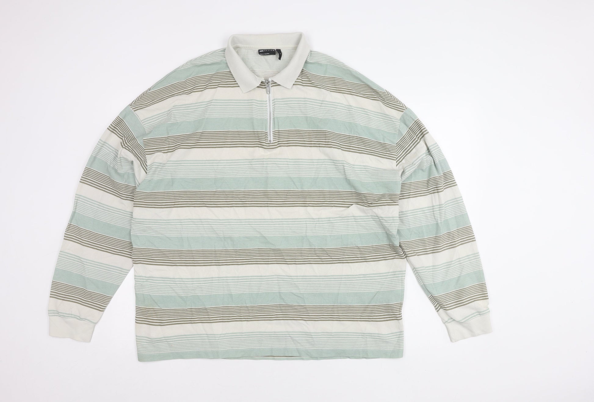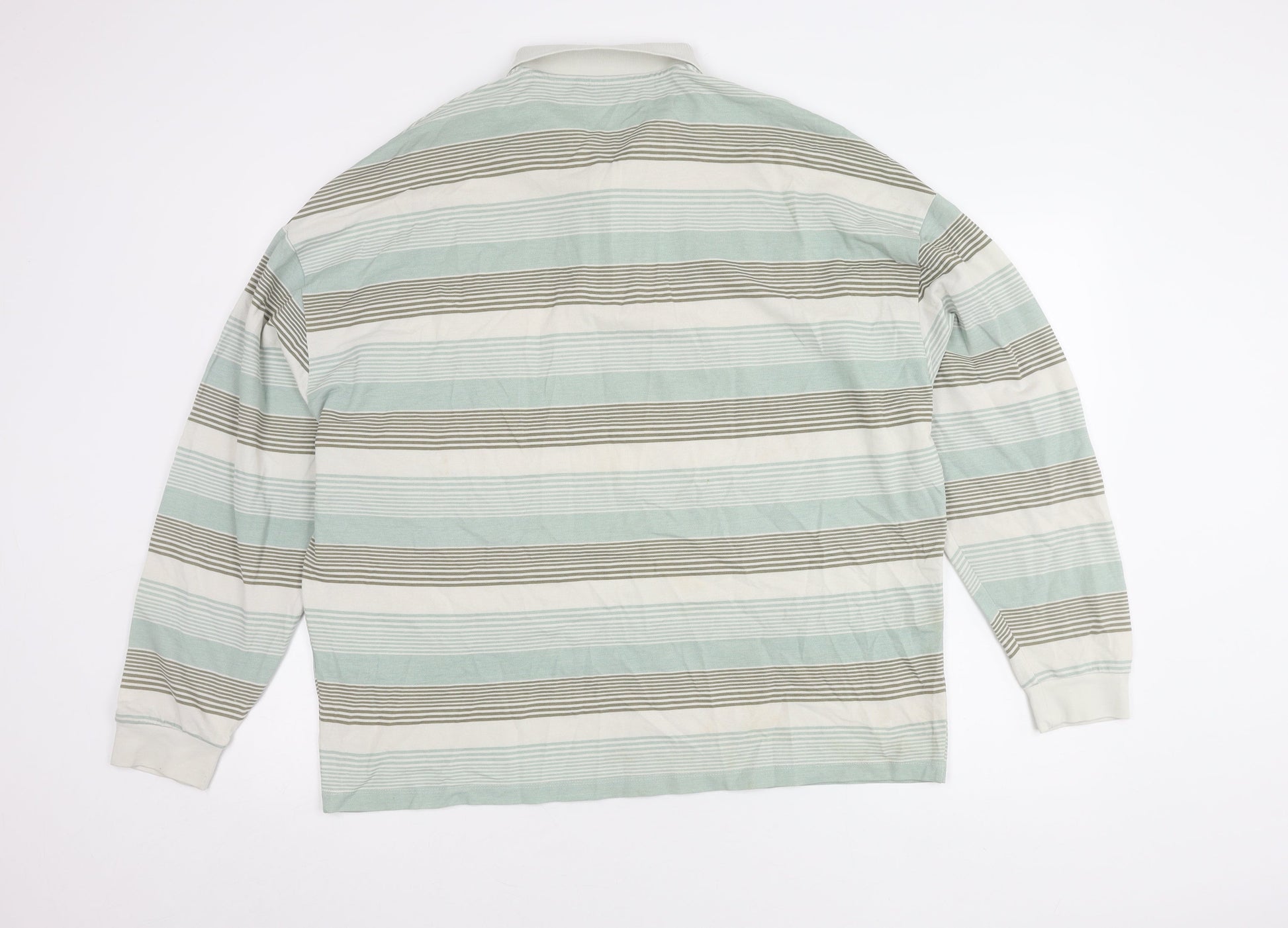 ASOS Men's XL White Striped Long Sleeve Polo Shirt