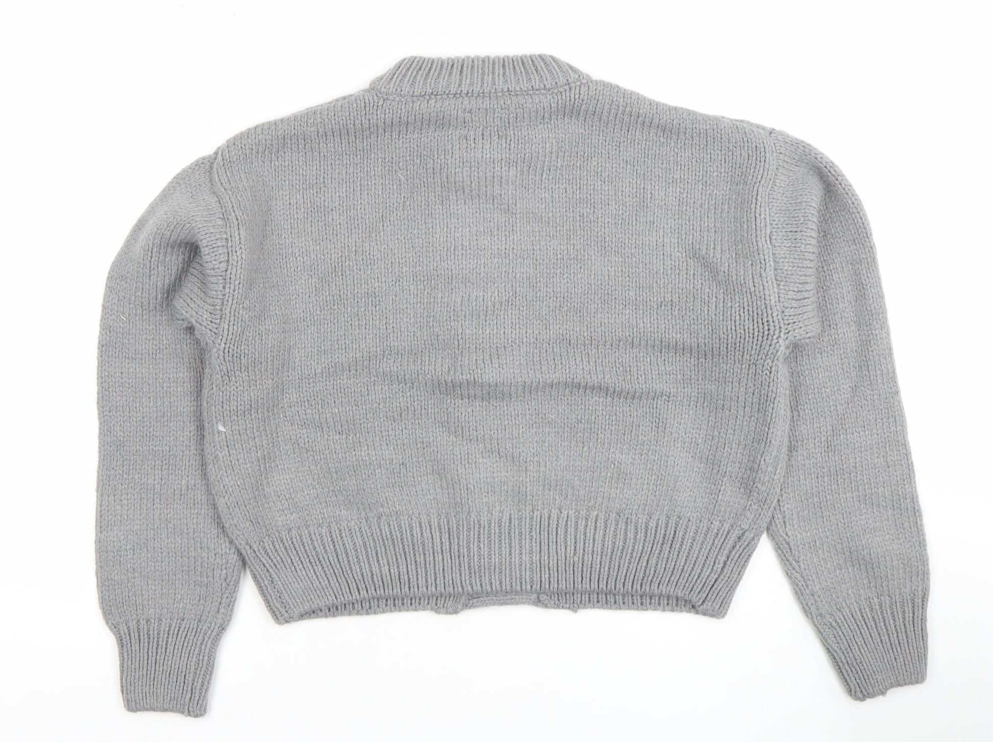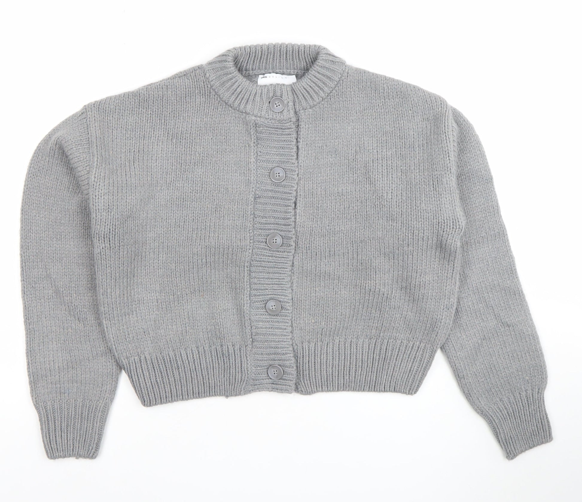 ASOS Women Grey Chunky Knit Crew Neck Button Cardigan Size S