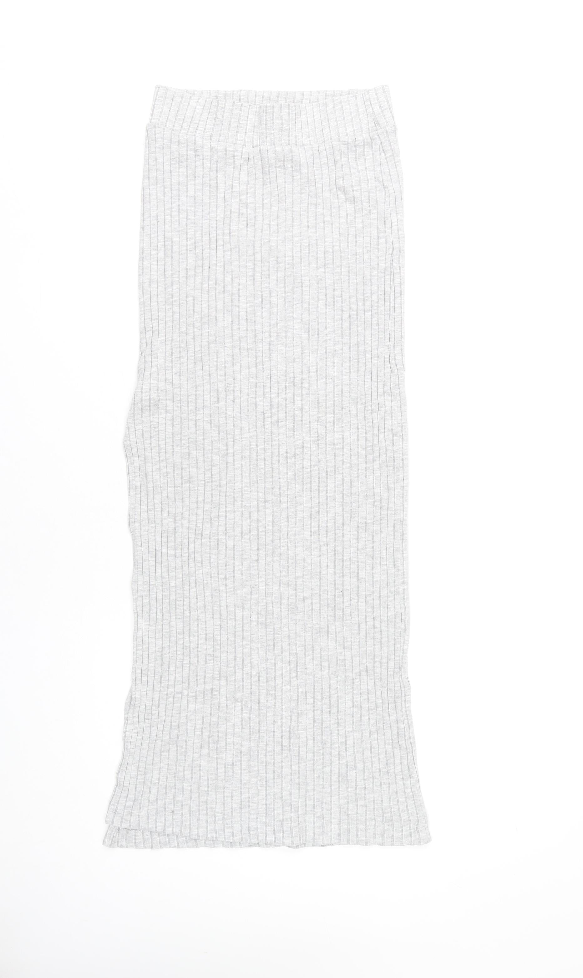 ASOS Women’s Grey Ribbed Knit Midi Straight Skirt Size 8 High Rise Stretch