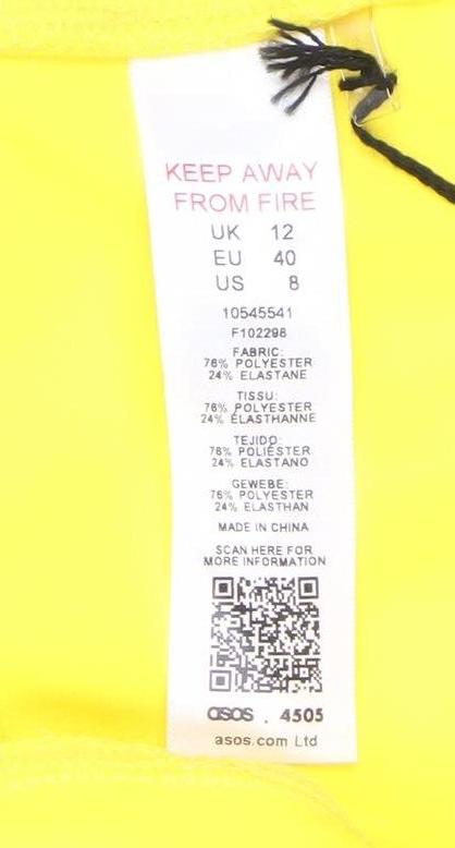 ASOS Women’s Yellow Size 12 Slim Fit Activewear Leggings