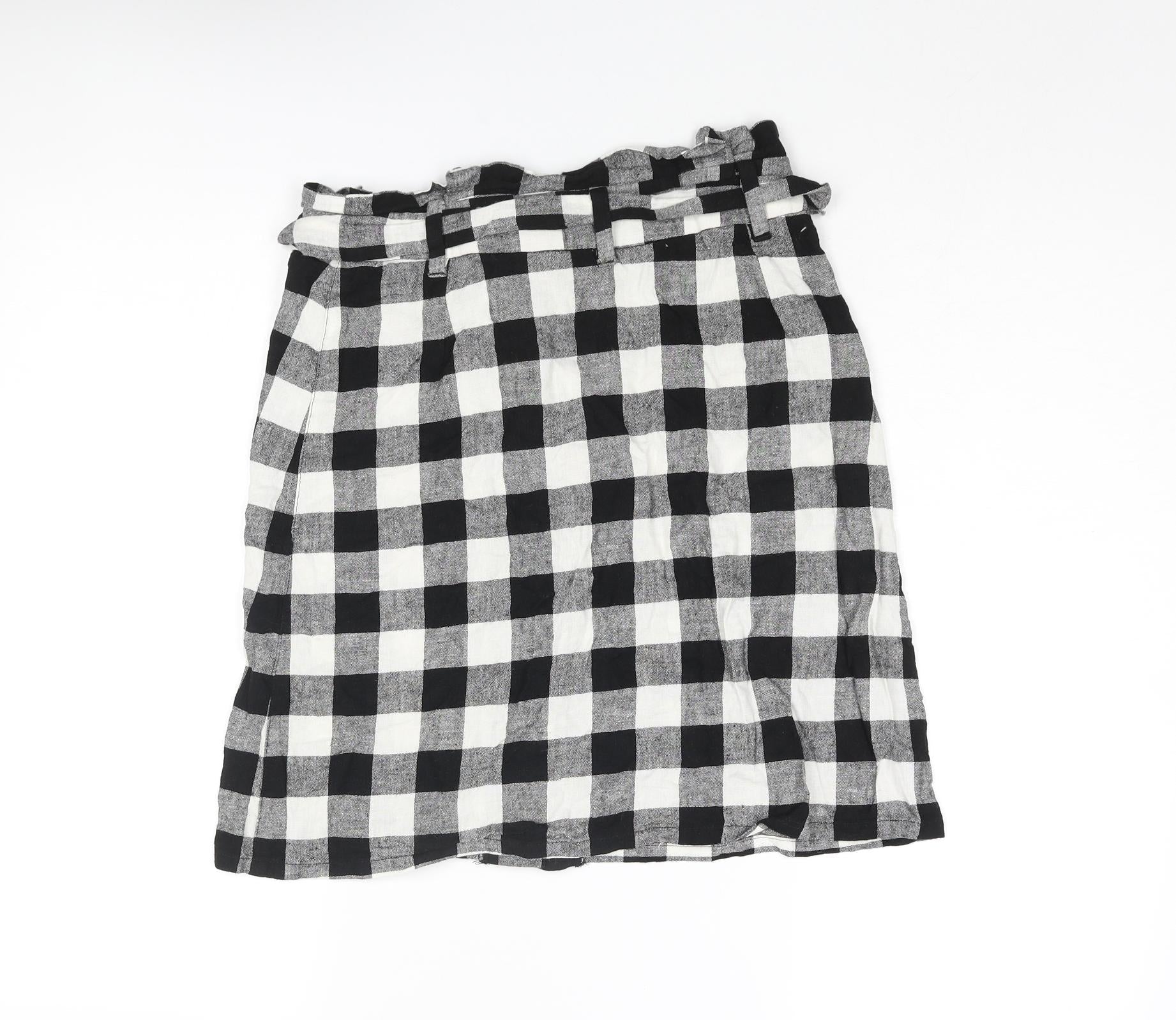 ASOS Womens Black Check Polyester A-Line Skirt Size 8 Button - Belted