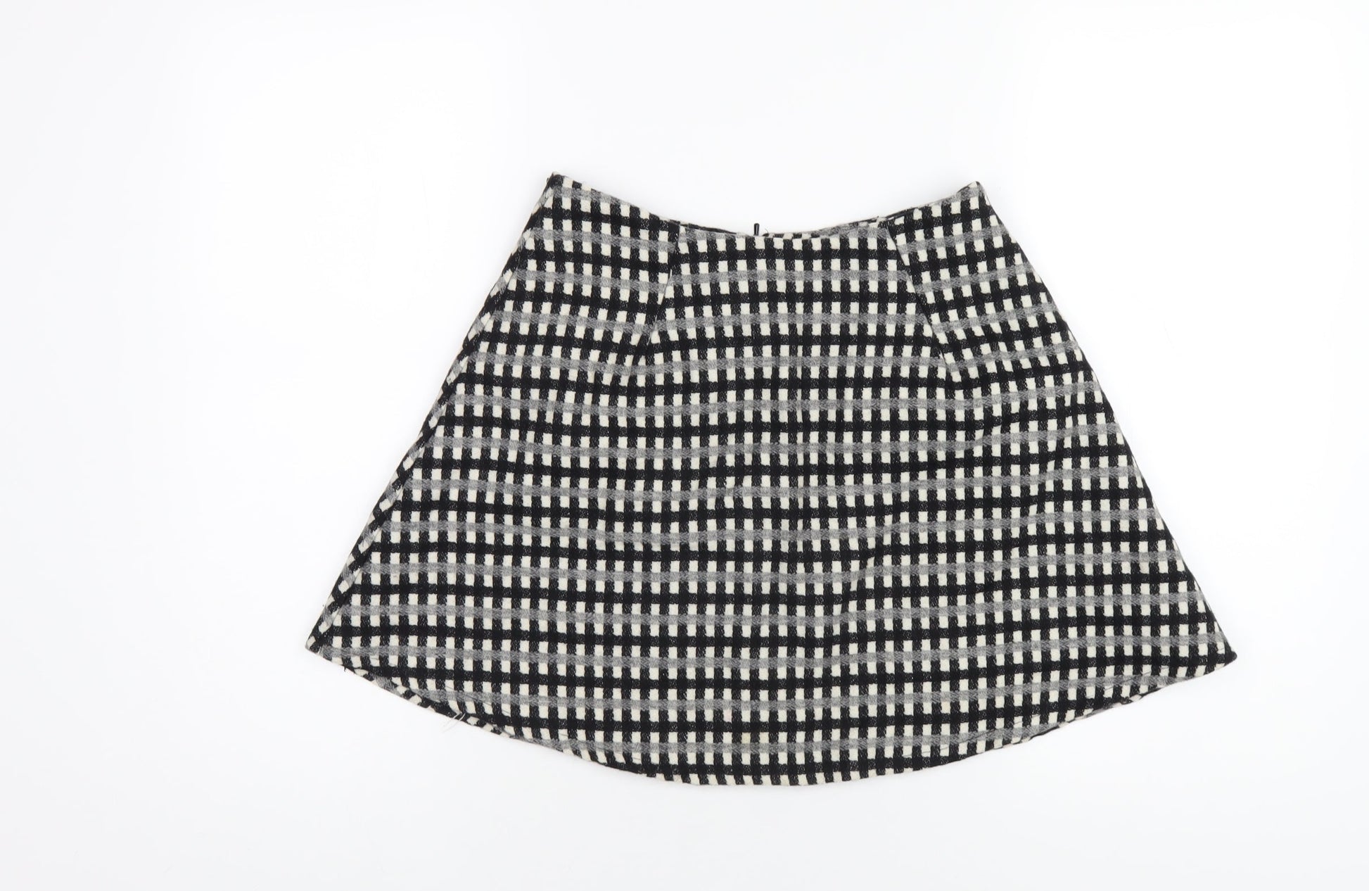 ASOS Womens Black Check Polyester A-Line Skirt Size 8 Zip