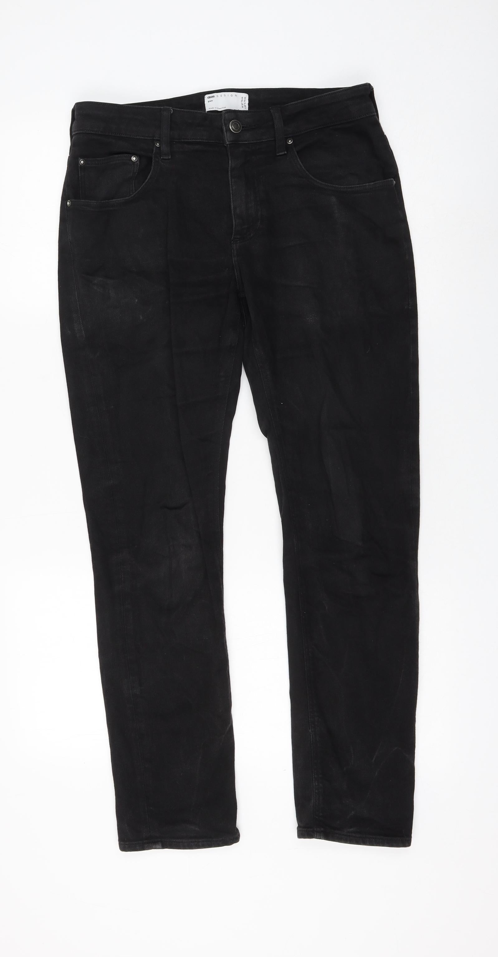 ASOS Womens Black Cotton Straight Jeans Size 30 in L30 in Regular Zip