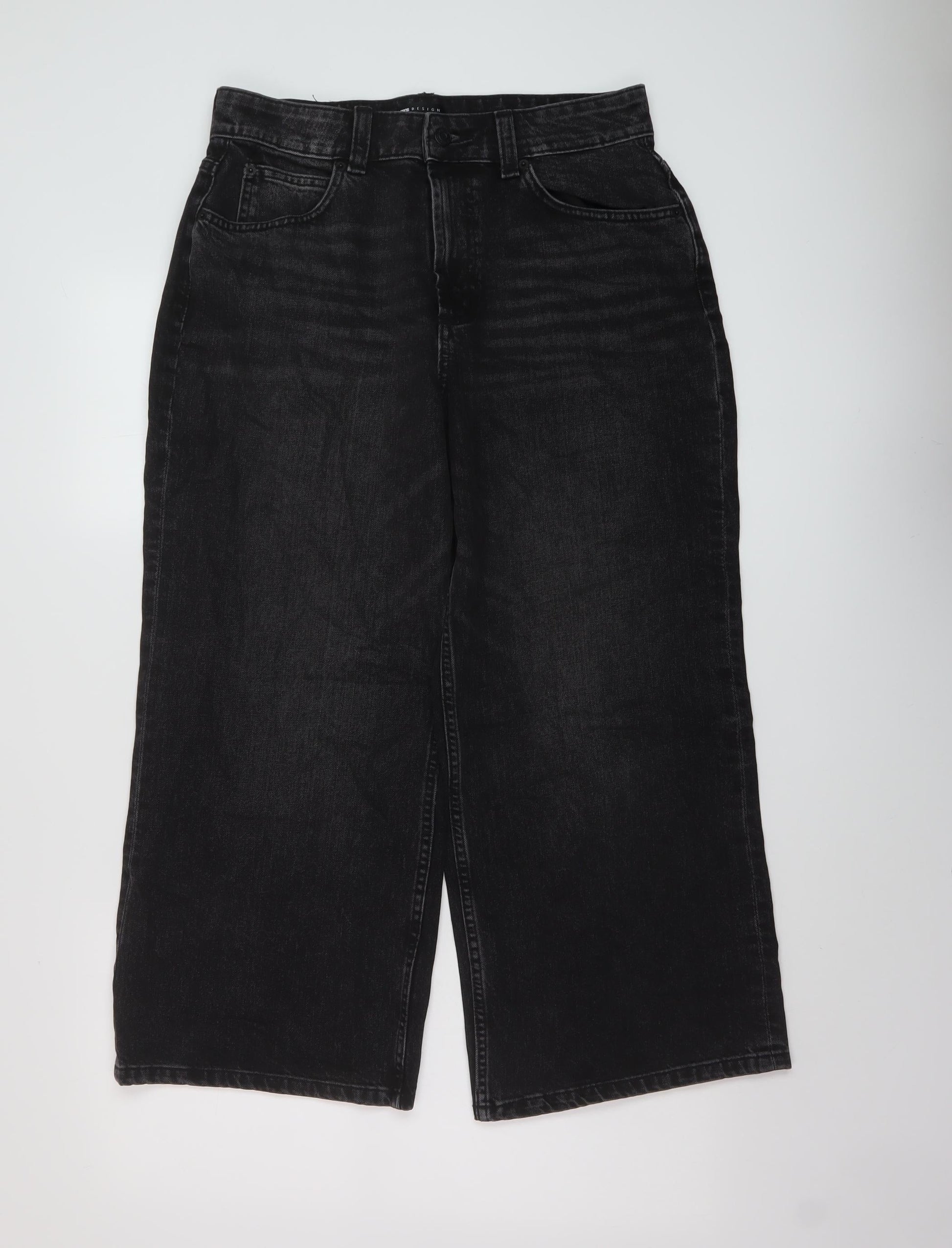 ASOS Womens Black Cotton Wide-Leg Jeans Size 30 in L26 in Regular Button