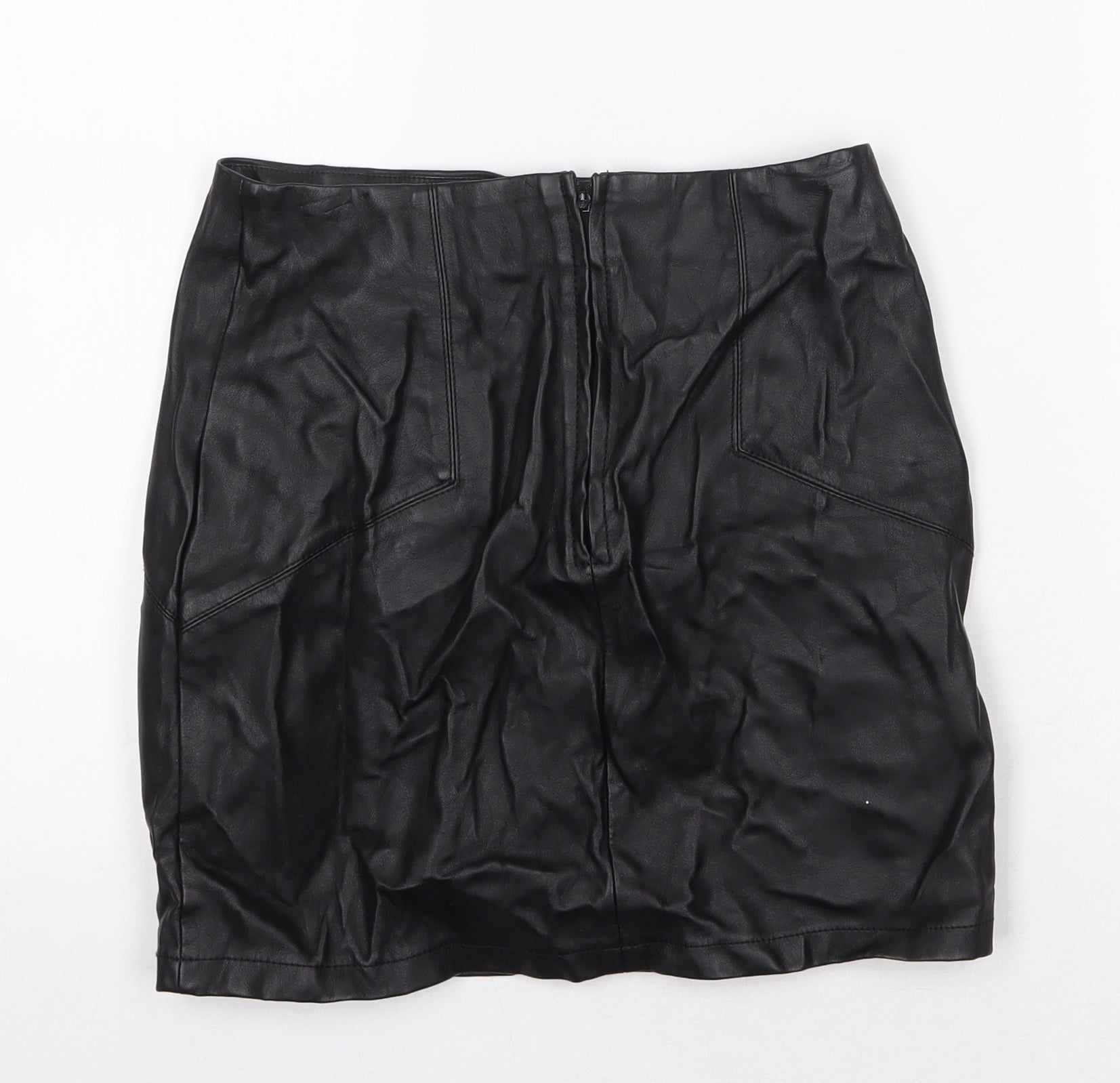 ASOS Womens Black Polyurethane Bandage Skirt Size 8 Zip