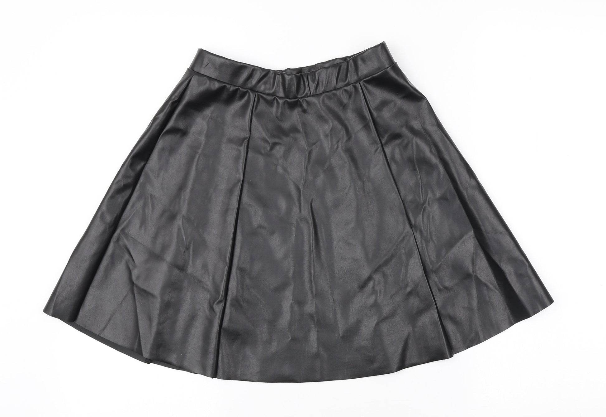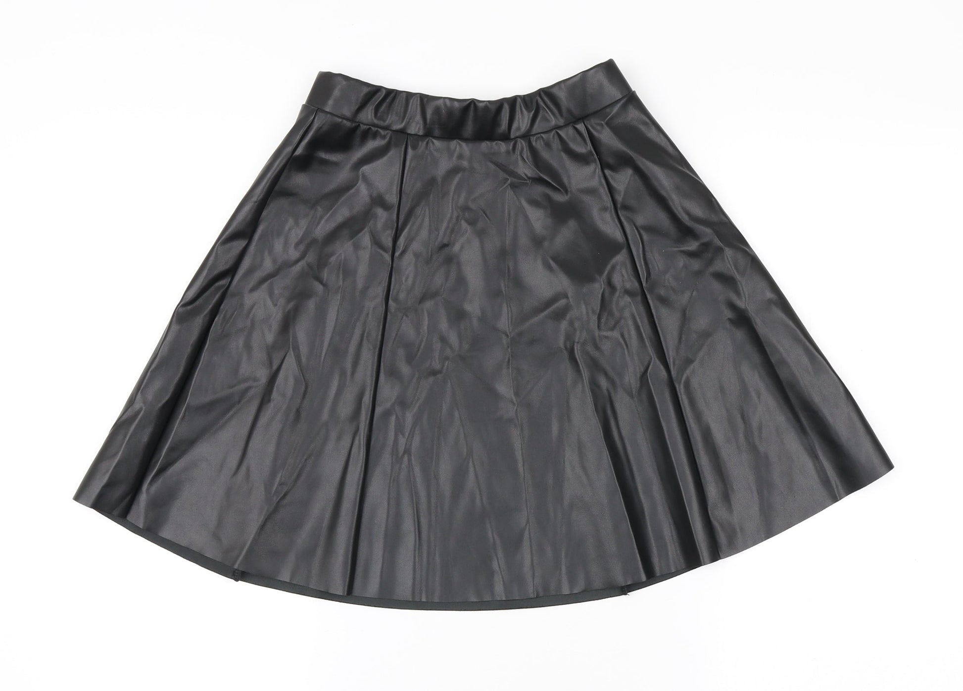 ASOS Womens Black Polyurethane Skater Skirt Size 6 - Elasticated waist