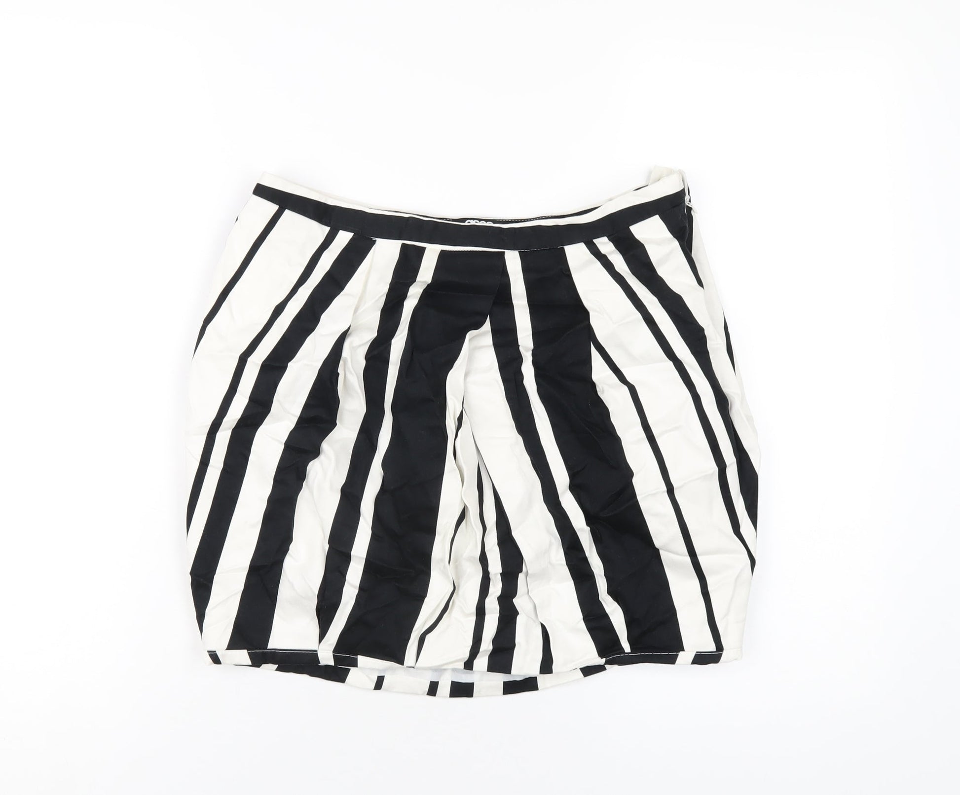 ASOS Womens Black Striped Cotton Mini Skirt Size 12 Zip