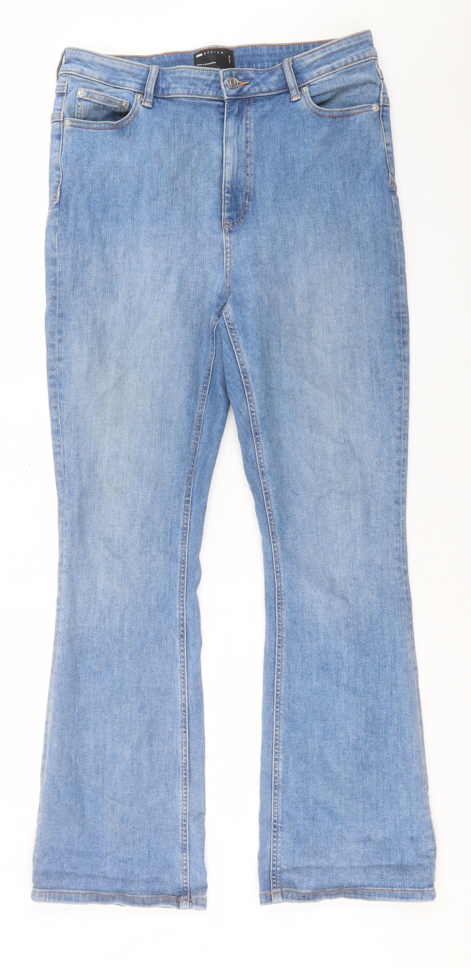 ASOS Womens Blue Cotton Bootcut Jeans Size 34 in L32 in Regular Button
