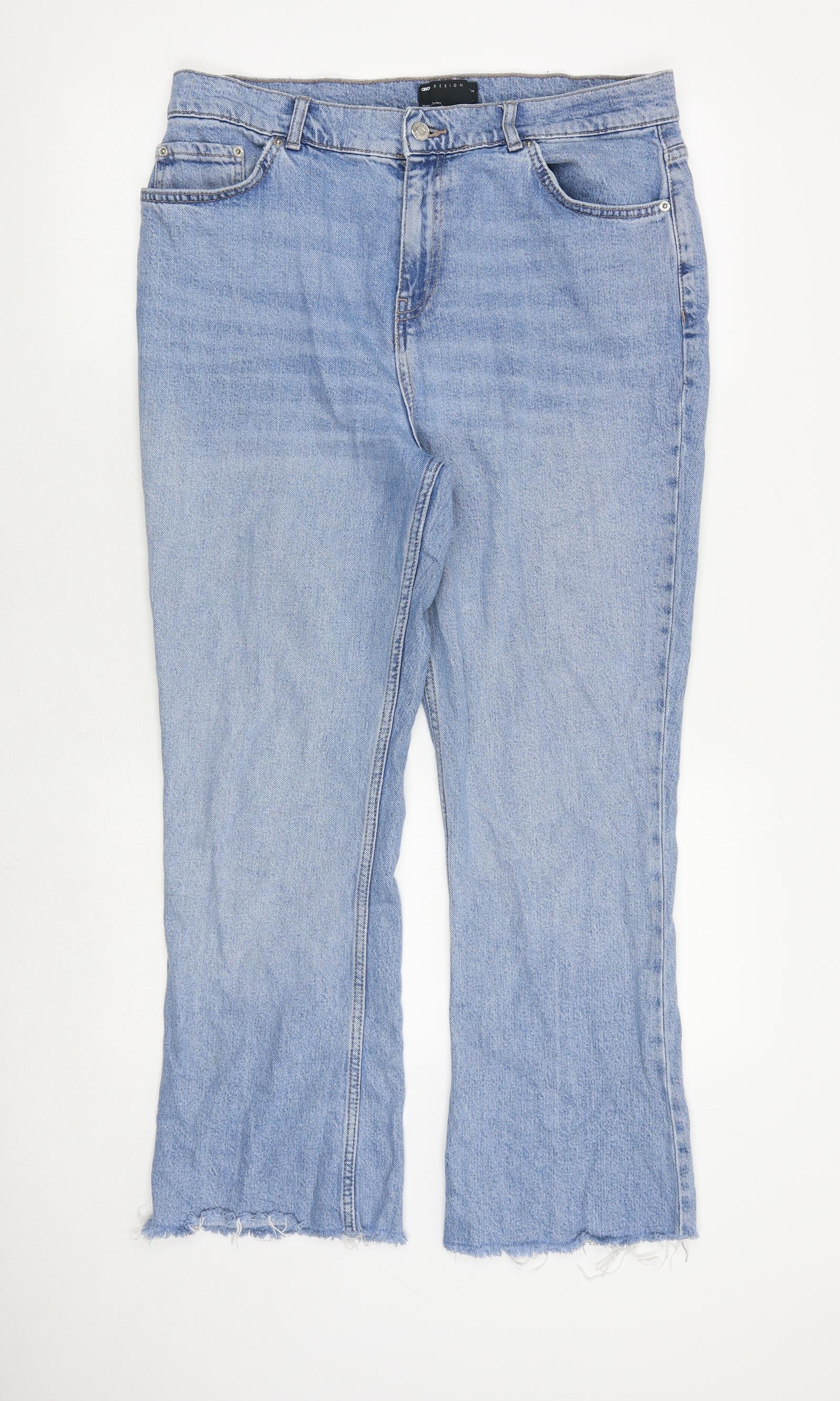 ASOS Womens Blue Cotton Bootcut Jeans Size 34 in Regular Zip - Distressed Hems