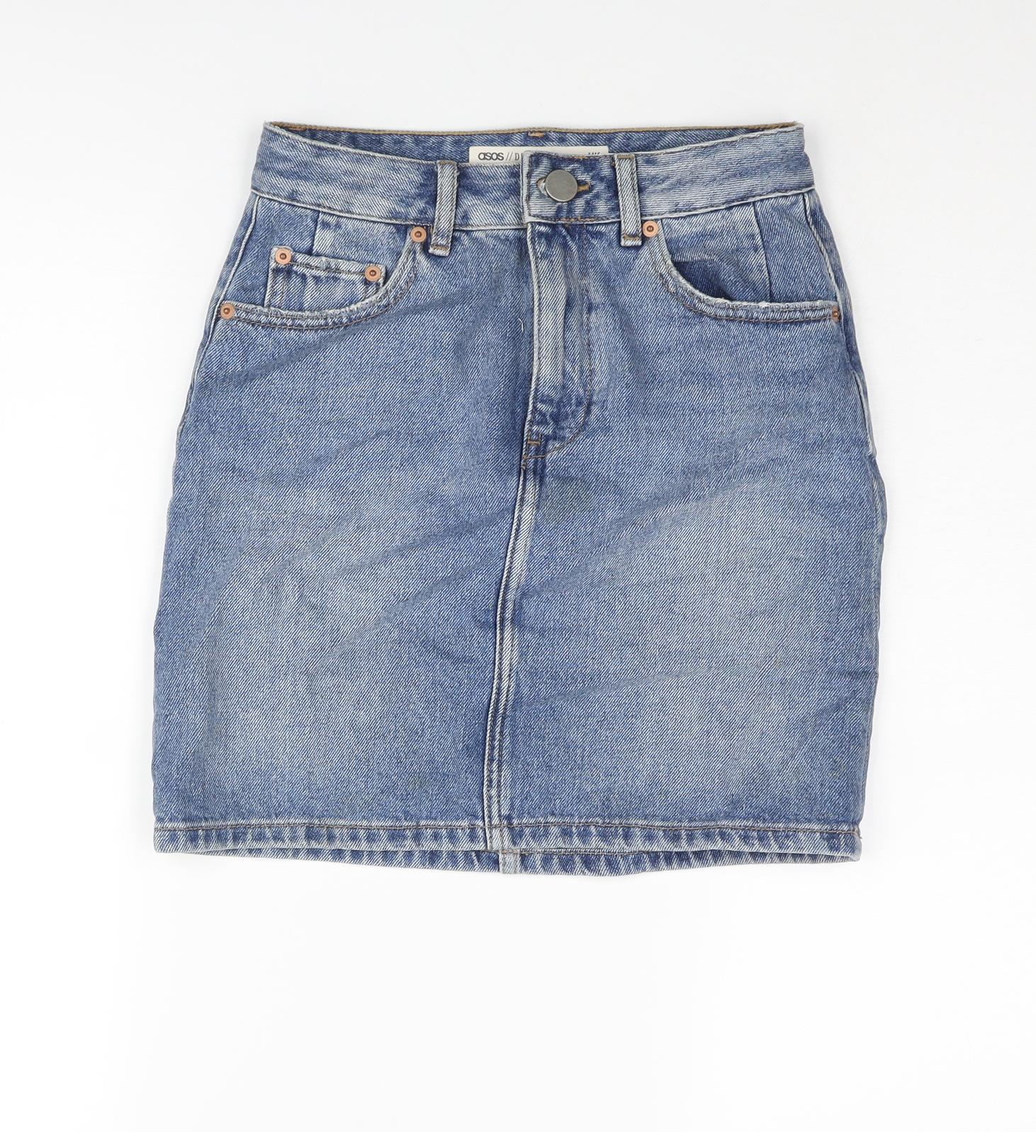 ASOS Womens Blue Cotton Straight & Pencil Skirt Size 6 Zip