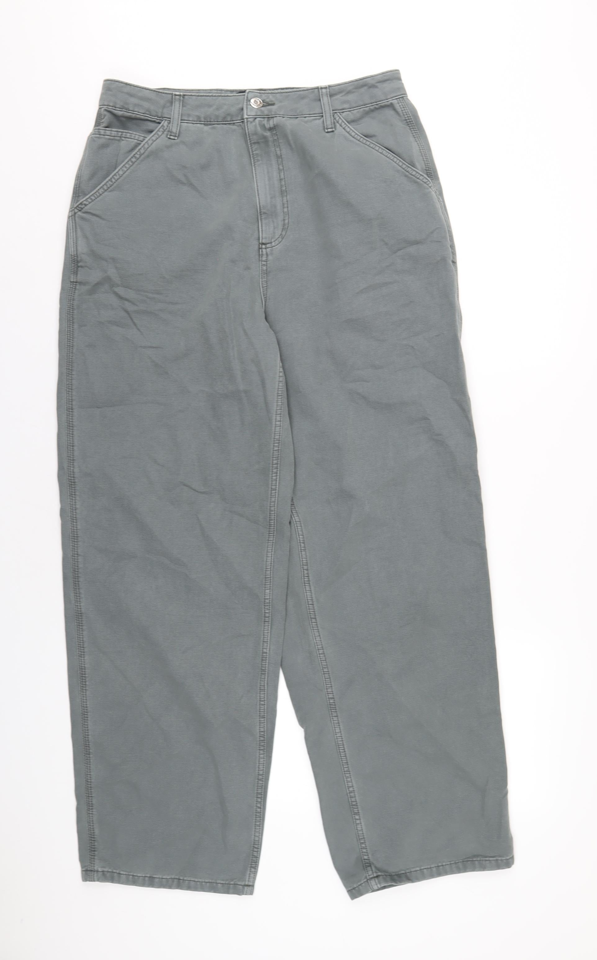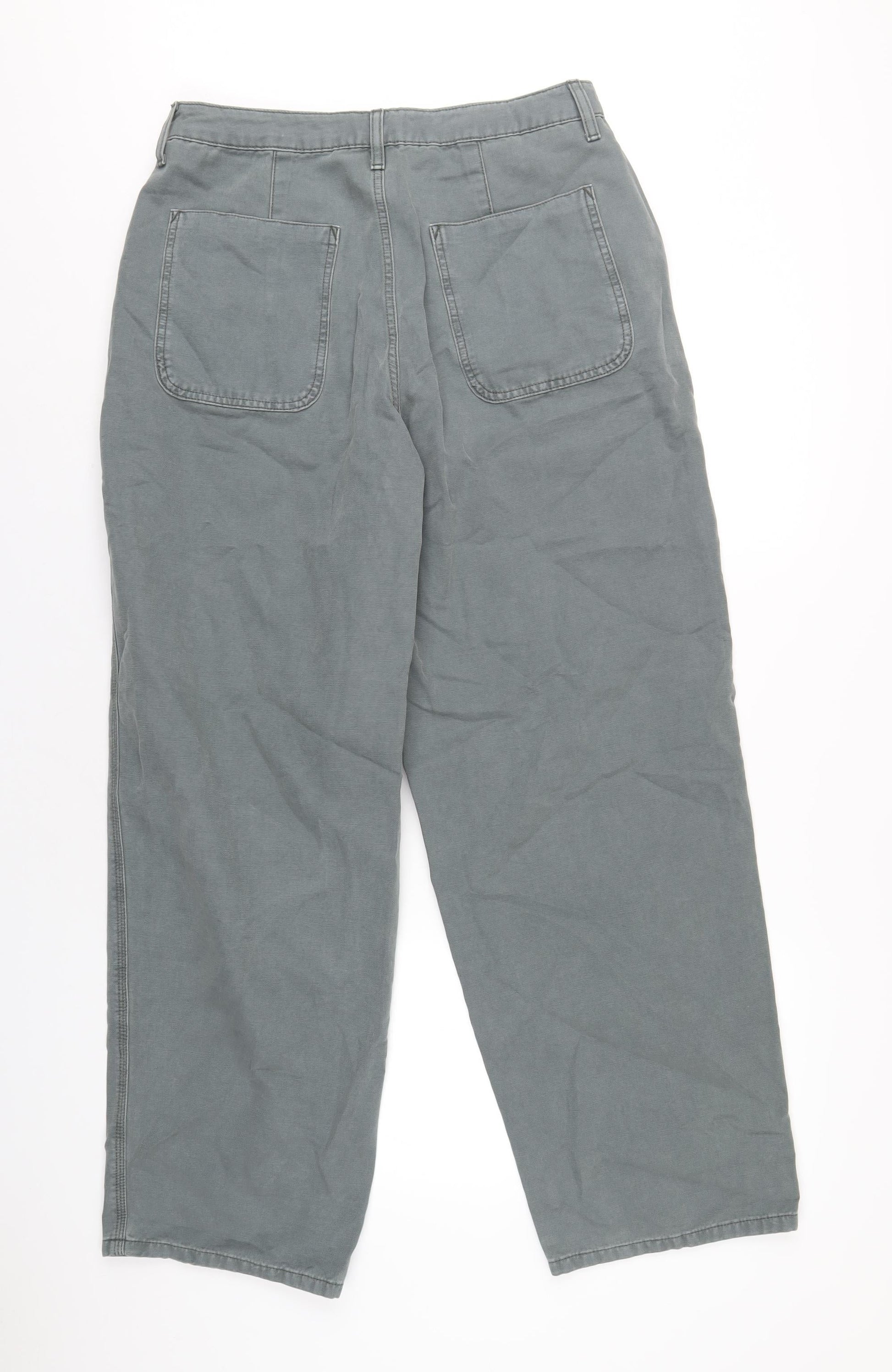 ASOS Womens Green Cotton Wide-Leg Jeans Size 14 L31 in Regular Zip