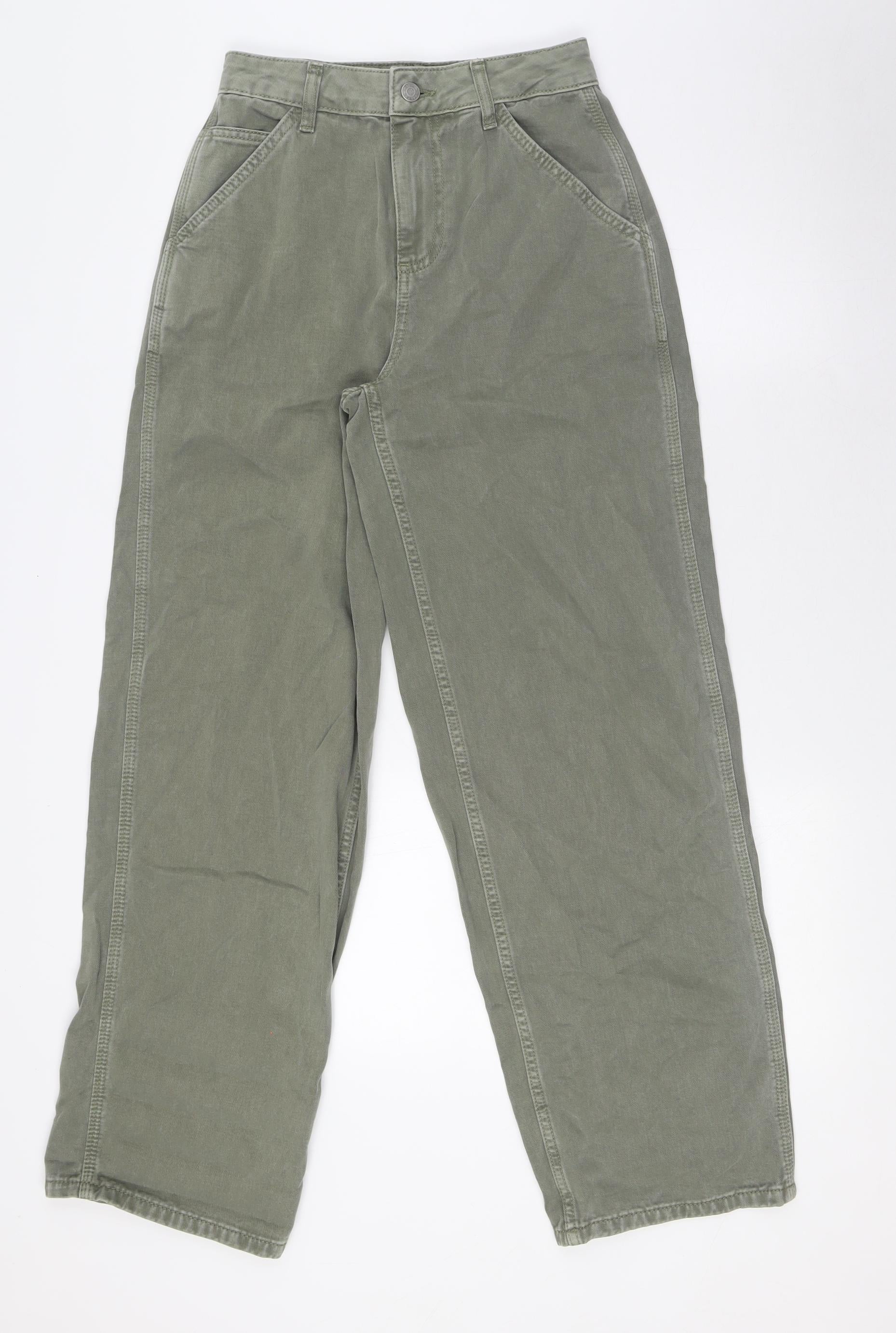 ASOS Womens Green Cotton Wide-Leg Jeans Size 4 L30 in Regular Button