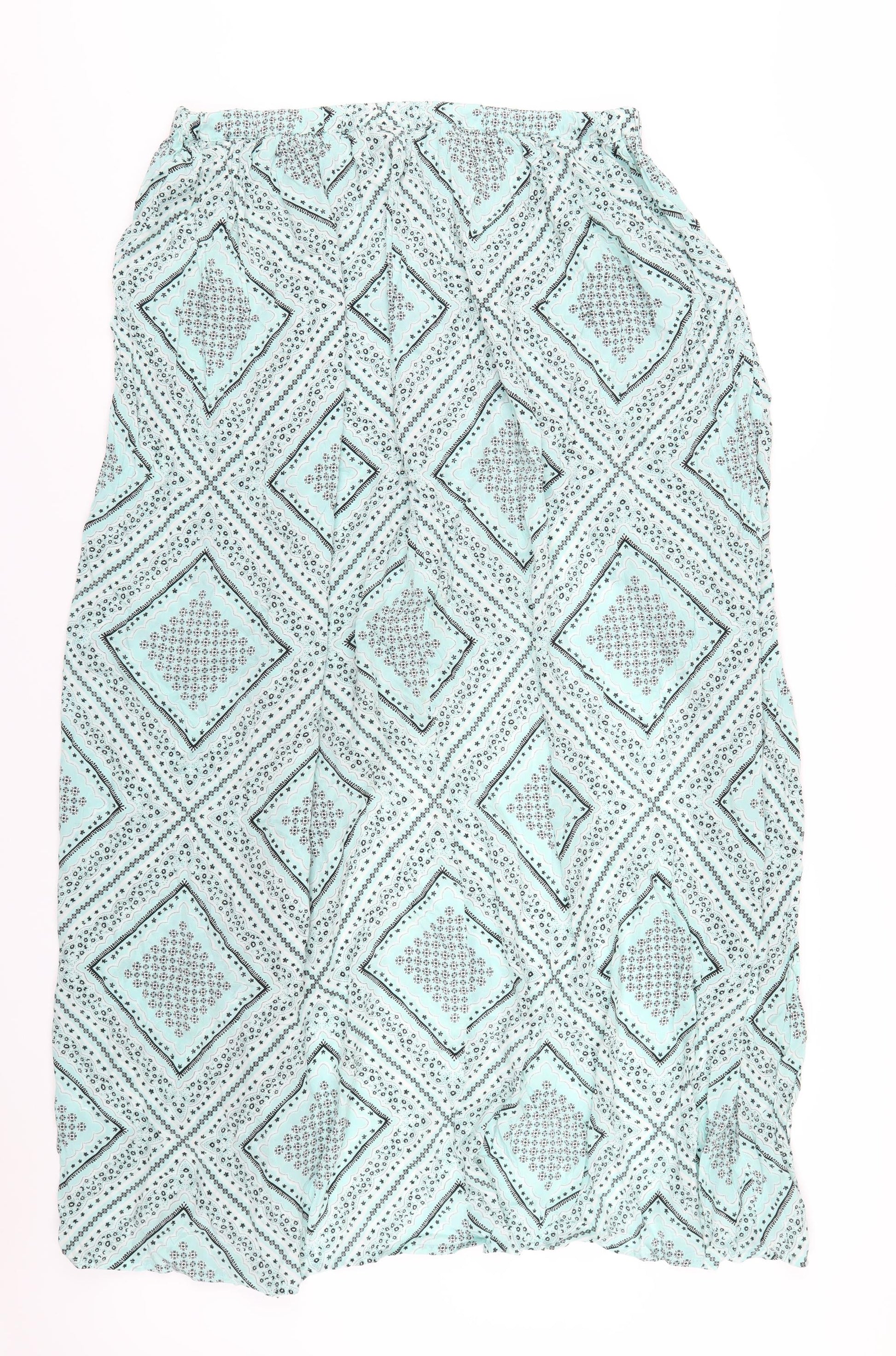 ASOS Womens Green Geometric Viscose A-Line Skirt Size 18