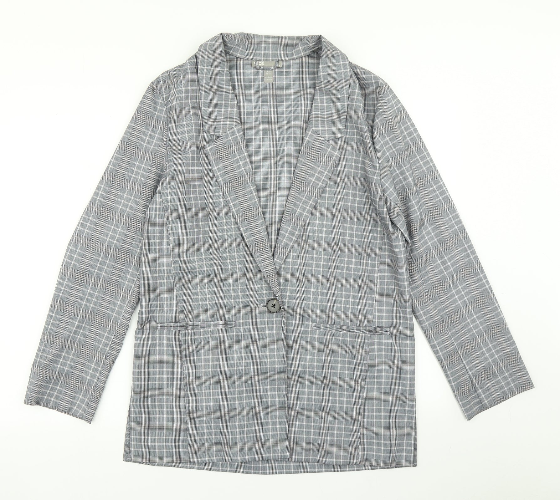 ASOS Womens Grey Plaid Jacket Blazer Size 10