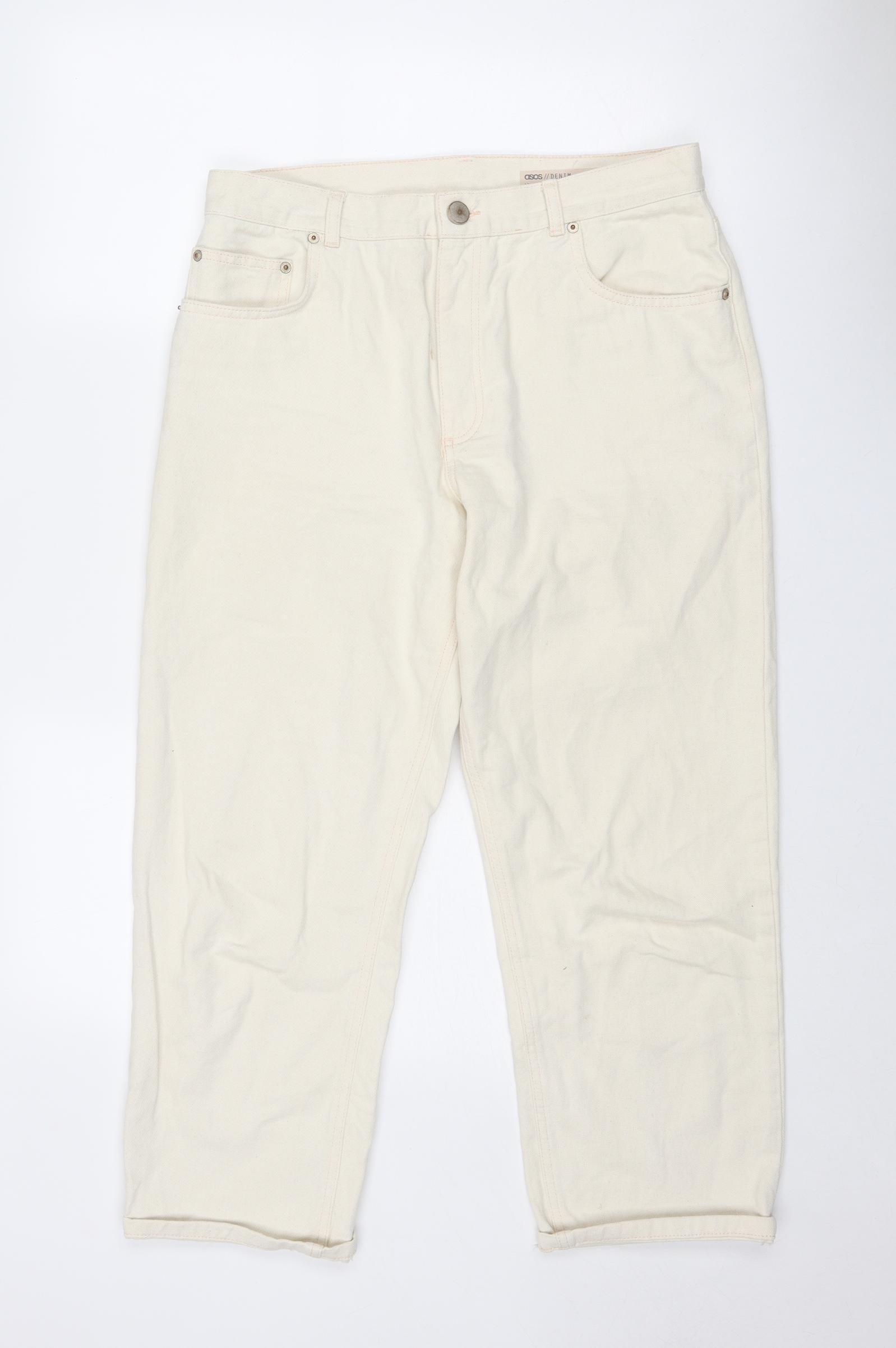 ASOS Womens Ivory Cotton Straight Jeans Size 32 in Regular Zip