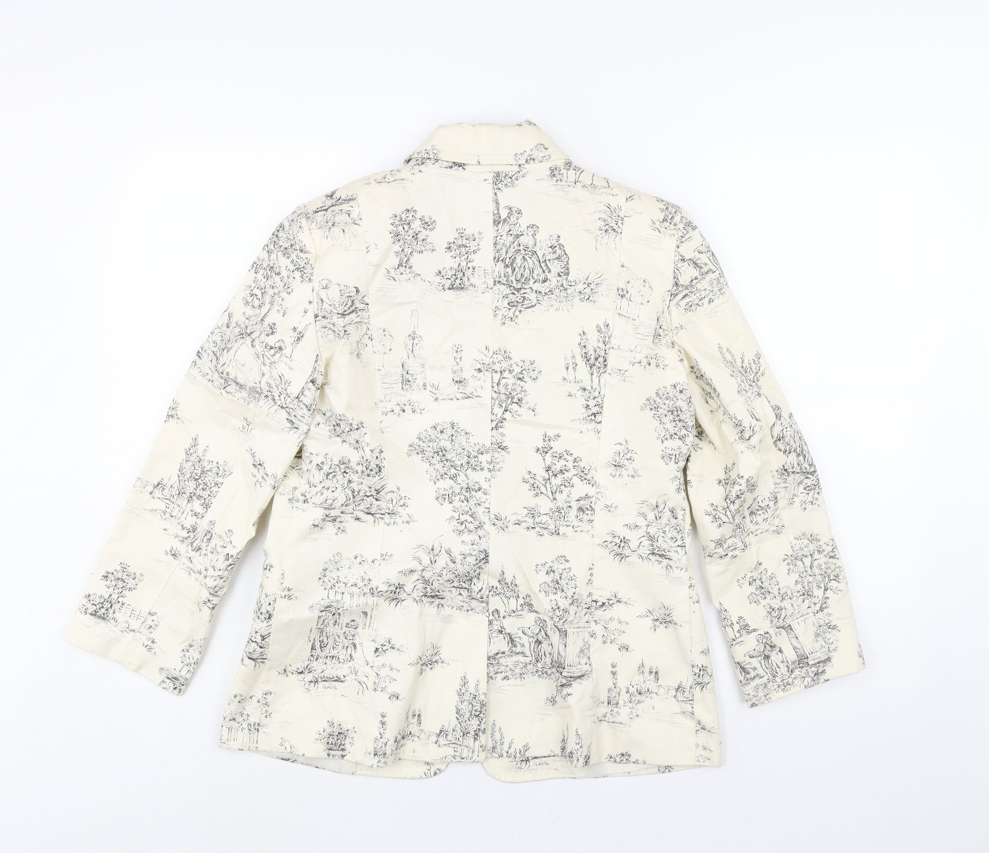 ASOS Womens Ivory Geometric Cotton Jacket Suit Jacket Size 10 - Tree Print